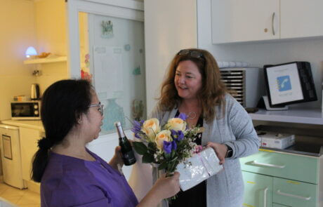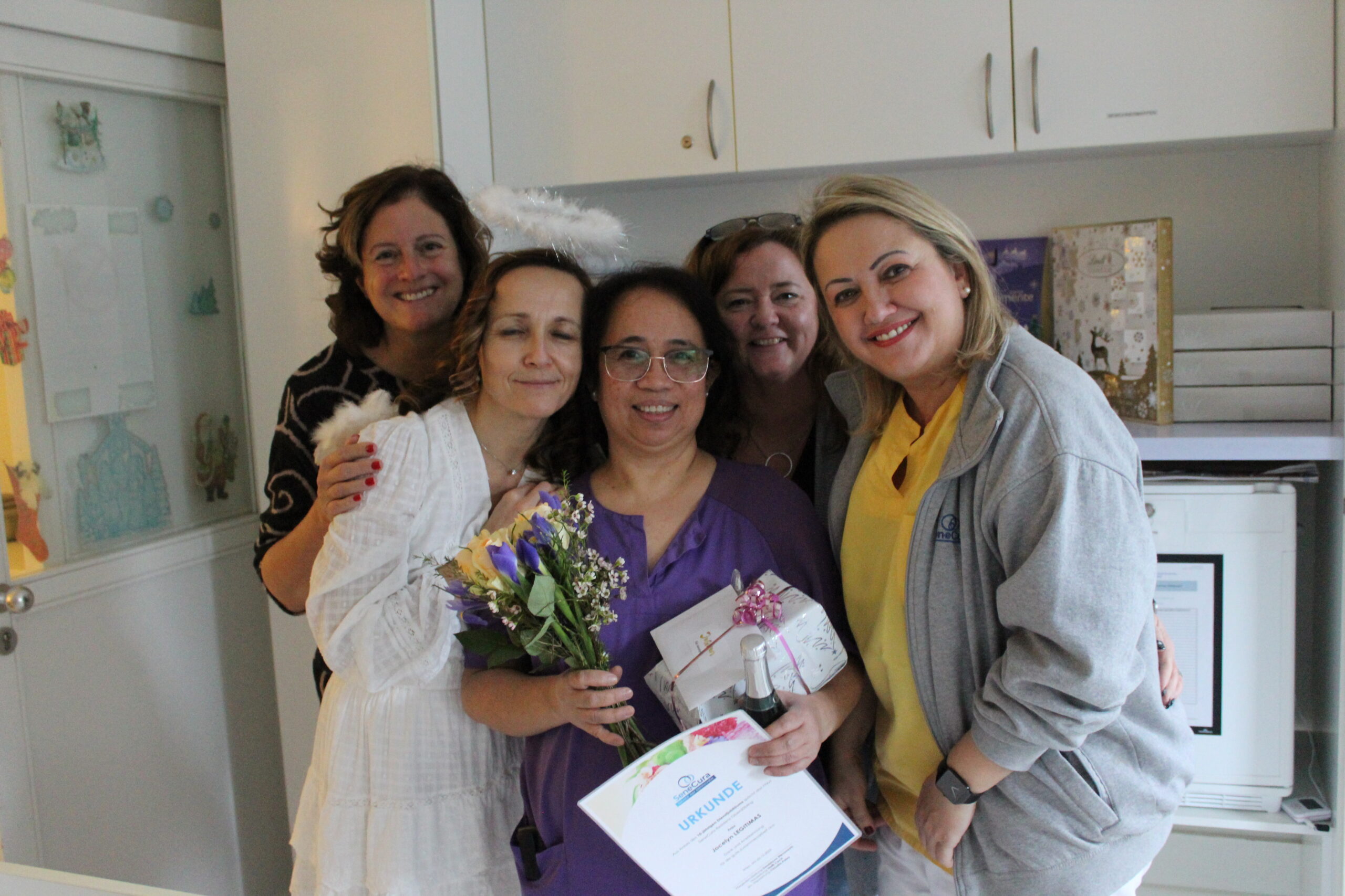 Kürzlich gab es in der SeneCura Residenz Oberdöbling Grund zum Feiern, denn Pflegeassistentin Jocelyn Legitimas feierte ihr 10-jähriges Dienstjubiläum. Zu diesem Anlass erhielt sie eine bunte Blumen, köstliche Schokolade und einige Gutscheine. Wir bedanken uns sehr herzlich für den Einsatz in den letzten Jahren!