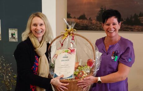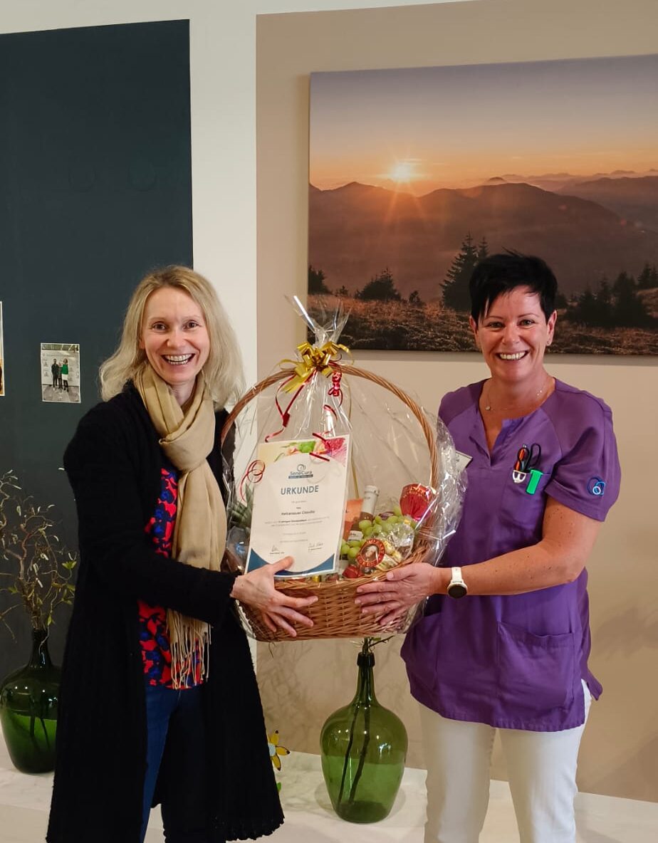 Letztens gab es im SeneCura Sozialzentrum Kirchberg in Tirol einen Grund zu feiern. Die Mitarbeiterin Claudia Hetzenauer feiert nämlich ihr 10-jähriges Dienstjubiläum im Haus. Zu diesem Anlass wurde ihr eine Urkunde sowie ein Korb voller Köstlichkeiten überreicht.