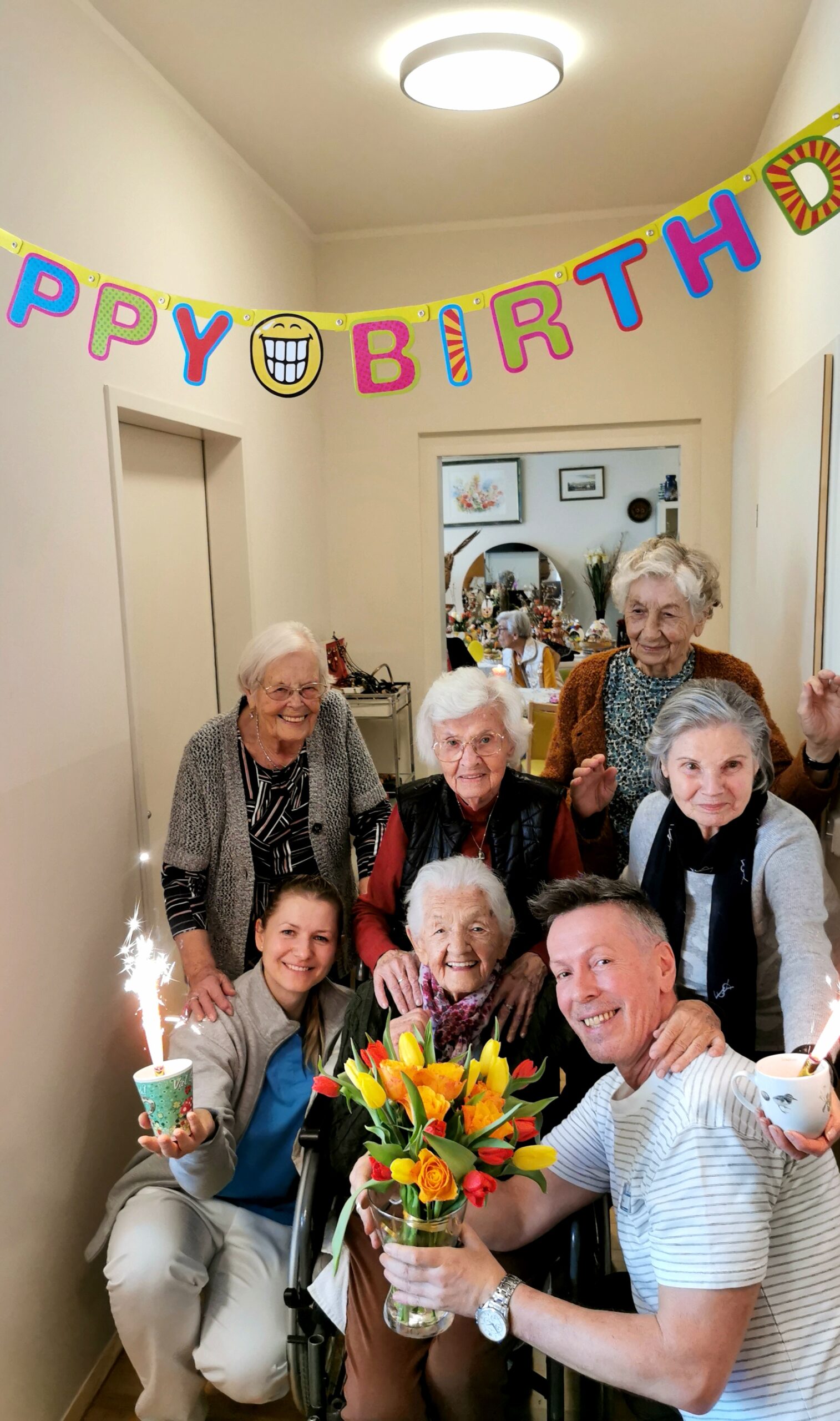 Man muss die Feste feiern wie sie fallen – und dieser Anlass war besonders schön, denn Bewohnerin Erika Wedenik feierte ihren 100. Geburtstag. Erika Wedenik war lange im SeneCura BePartment Graz-Lend zur Miete. Für ganz viele Menschen im Haus ist sie immer ein Sonnenschein. Als der Alltag im BePartment bescherlicher wurde, übersiedelte Frau Wedenik in das SeneCura Pflegeheim Graz-Lend gegenüber. Den Kontakt zu den Bewohner:innen des BePartments blieb aber immer bestehen. Um die Jubilarin zu überraschen, organisierte der Aktivitätenleiter Siegfried Rumpold eine Geburtstagsfeier. Erika Wedenik zu Tränen gerührt: „Mit so lieben Menschen meinen 100. Geburtstag zu feiern, ist das schönste Geschenk für mich.“ Anna Wedenik, die Enkeltochter, die im BePartment als DGKP arbeitet, war sehr ergriffen und dankte aufs allerherzlichste den Anwesenden.
