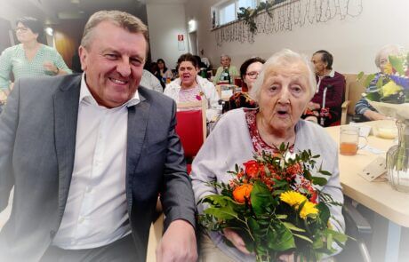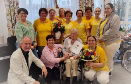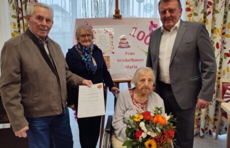 Einen Grund zu feiern gab es kürzlich im SeneCura Sozialzentrum Söchau, als die Bewohnerin Maria Winkelbauer ihren 100. Geburtstag feierte. Mit Begleitung von Peter Lorenz am Piano gab es für die Jubilarin ein lautes Ständchen und auch der Bürgermeister Josef Kapper gratulierte der nun ältesten Bewohnerin von Söchau mit einem farbenfrohen Frühlingsstrauß zu diesem besonderen Geburtstag.