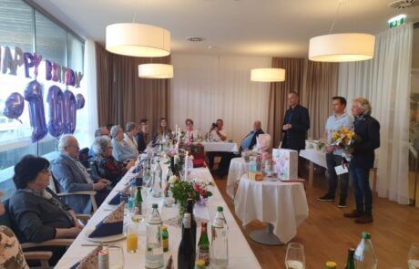Friederike Amschl, Bewohnerin des SeneCura Sozialzentrums Vasoldsberg, feierte kürzlich ihren 100. Geburtstag. Ein Jahrhundert muss gebührlich gefeiert werden, daher wurden Verwandte und Freunde zu einer kleinen Feier ins Haus eingeladen. Auch Bürgermeister Johann Wolf-Maier kam zu Besuch, um persönlich zu gratulieren. Dem gesamten Team des Hauses war es eine große Freude Friederike Amschl zu diesem Ehrentag zu gratulieren. Natürlich durften Brötchen, Kaffee und Kuchen sowie ein Gläschen Sekt für eine gelungene Geburtstagsfeier nicht fehlen.