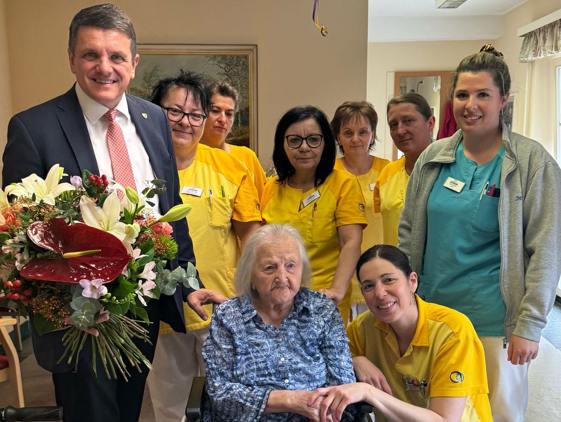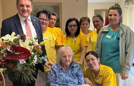 Am 01. März 2025 feierte die Bewohnerin des SeneCura Sozialzentrums Söchau, Winkelbauer Maria, ihren 101. Geburtstag. Unter den vielen Gratulantinnen und Gratulanten durften wir auch Bürgermeister Franz Jost begrüßen. Er überreichte Frau Winkelbauer zu ihrem Ehrentag einen prachtvollen Blumenstrauß sowie eine flauschige Kuscheldecke.