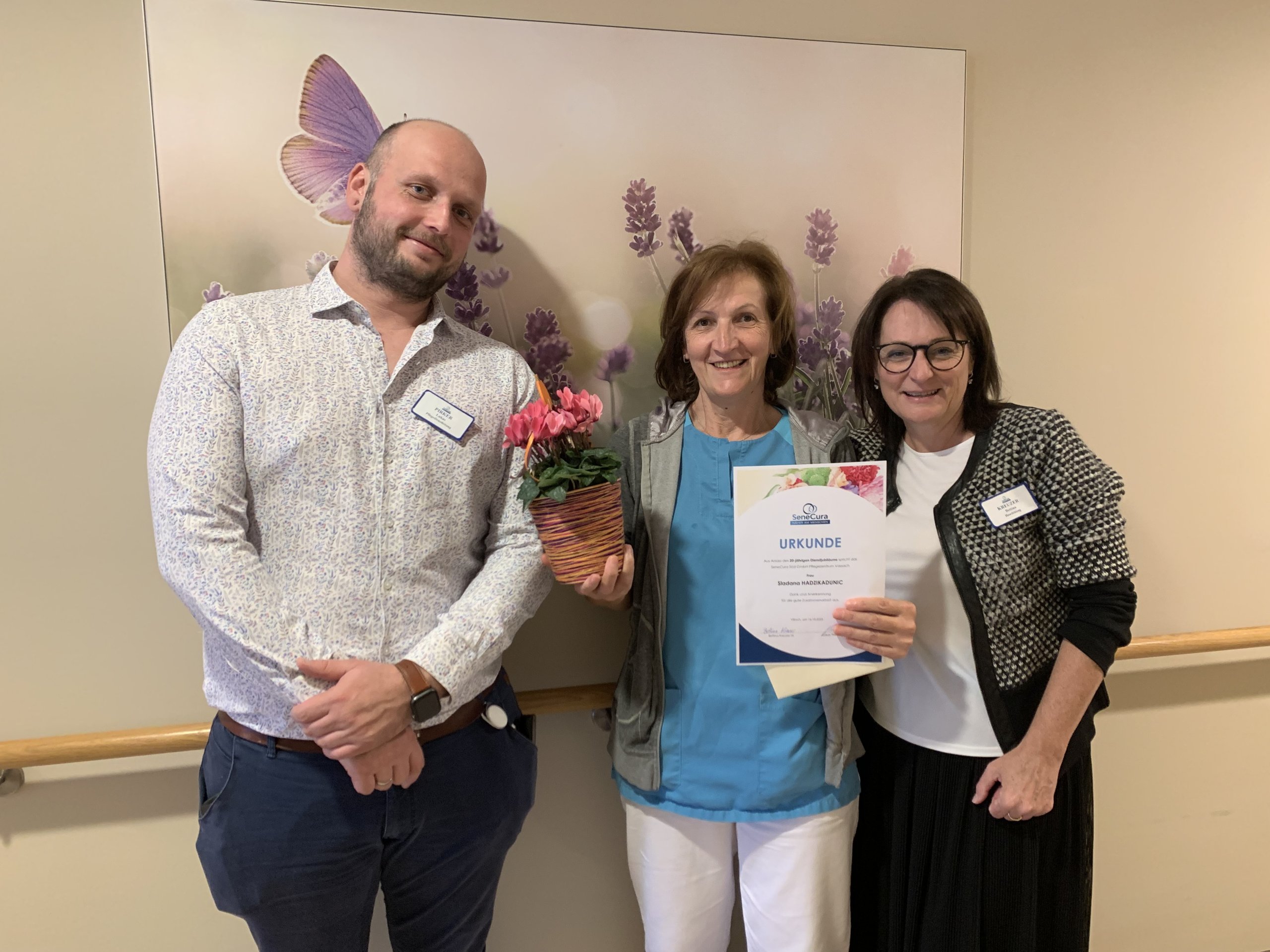 Im Oktober durfte das Team des SeneCura Pflegezentrums Vassach Pflegeassistentin Sladana Hadzikadunic herzlich zum 20-jährigen Dienstjubiläum gratulieren. Als Teil unseres Teams engagiert sich Sladana mit großem Einsatz und Herzlichkeit für das Wohl unserer Bewohner:innen. „Wir sind dankbar, Frau Hadzikadunic in unserem Haus zu haben. Mit ihrem stets freundlichen und hilfsbereiten Wesen bereichert sie nicht nur das tägliche Miteinander im Team, sondern wird auch von den Bewohner:innen sehr geschätzt.“, bedanken sich Hausleitung Bettina Kreuzer und Pflegedienstleiter Lukas Pirker.