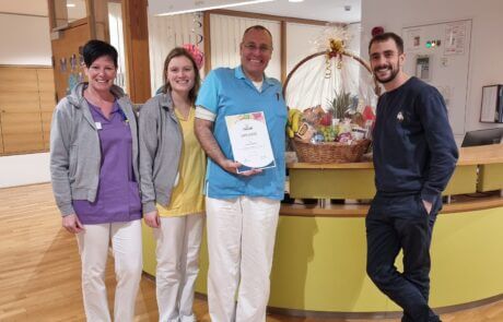 Vor Kurzem durfte das SeneCura Sozialzentrum Kirchberg in Tirol dem langjährigen Betriebsrat Thomas Wimmer zum 30-jährigen Dienstjubiläum herzlich gratulieren. Das Team dankt Herrn Wimmer für seine langjährige sowie tatkräftige Unterstützung. Zu diesem Anlass wurde mit einem tollen Geschenkskorb ausgiebig gefeiert.