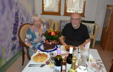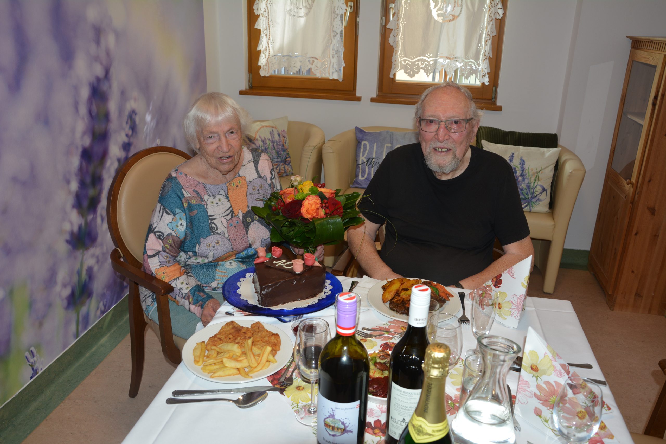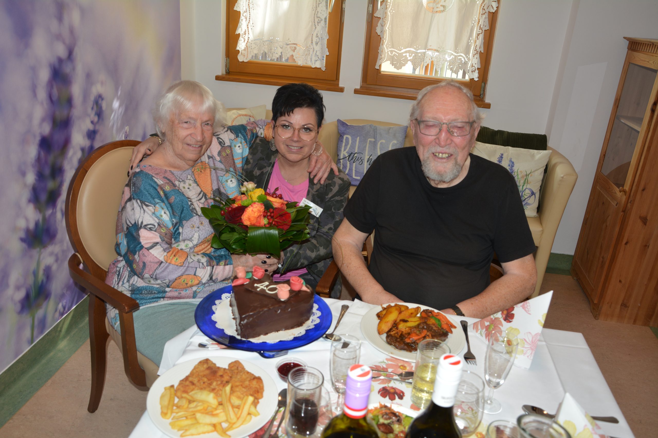 Ein besonderes Jubiläum wurde kürzlich im SeneCura Sozialzentrum Feldbach zelebriert, denn die Bewohner:innen Theresia und Franz Wockner begingen ihren 40. Hochzeitstag. In festlicher Atmosphäre wurde mit köstlichem Essen, erlesenen Weinen und einem schönen Blumenstrauß auf das Ehepaar angestoßen. Als süßer Abschluss wurde eine herrliche Schokotorte serviert, die sich die Familie Wockner schmecken ließ. Gemeinsam wurde mit dem ein oder anderen Glas Sekt auf vier gemeinsame Jahrzehnte voller Liebe und Erinnerungen angestoßen.
