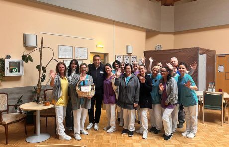 Kürzlich hat das SeneCura Sozialzentrum Rust den langjährigen Hausleiter, Gerald Krenn, verabschiedet. Das Team des Hauses ließ sich wieder so einiges einfallen, um Gerald einen würdigen Abschied zu bescheren. Die Mitarbeiter:innen versammelten sich, um Gerald einen Geschenkskorb voller Köstlichkeiten und einem Brief zu überreichen.