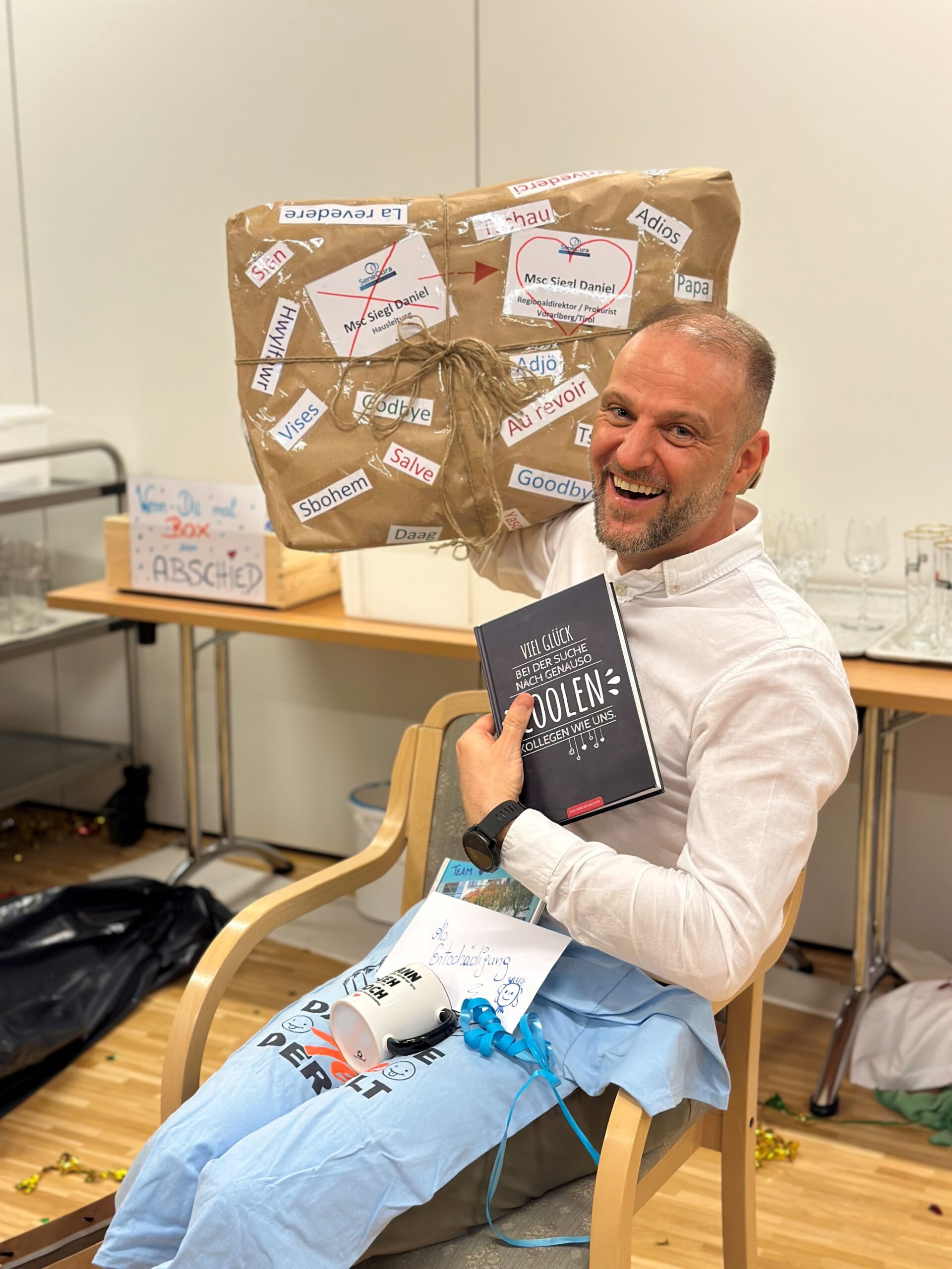 Letzten Freitag, den 02.02.2024, verabschiedete das SeneCura Sozialzentrum Laurentius-Park Bludenz-Team ihren langjährigen Hausleiter, vormals Pflegedienstleiter und Weggefährten Daniel Siegl. Mit einer kleinen List konnte Daniel unwissend ins Haus gelockt und mit einer Überraschungsparty verabschiedet werden. Bei einem gemütlichen Zusammensein wurde so manche Anekdote aus den gemeinsamen Jahren aufgegriffen. Highlight des Abends war der Auftritt der „CrazySisters Angi & Astrid“ mit ihrer Hommage – „… dann geh doch!!! …“. „Nach mehr als 20 Jahren, die du in unserem Haus gewirkt hast, bleibt uns nur DANKE zu sagen und dir für die Zukunft alles Gute zu wünschen“, so langjährige Wegbegleiterin Astrid Simon.