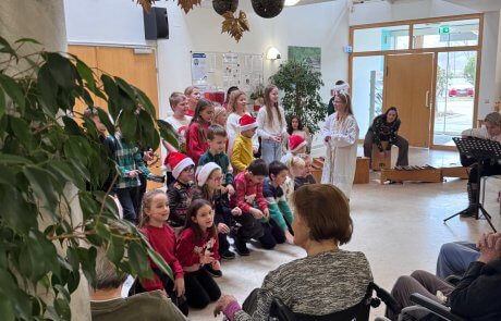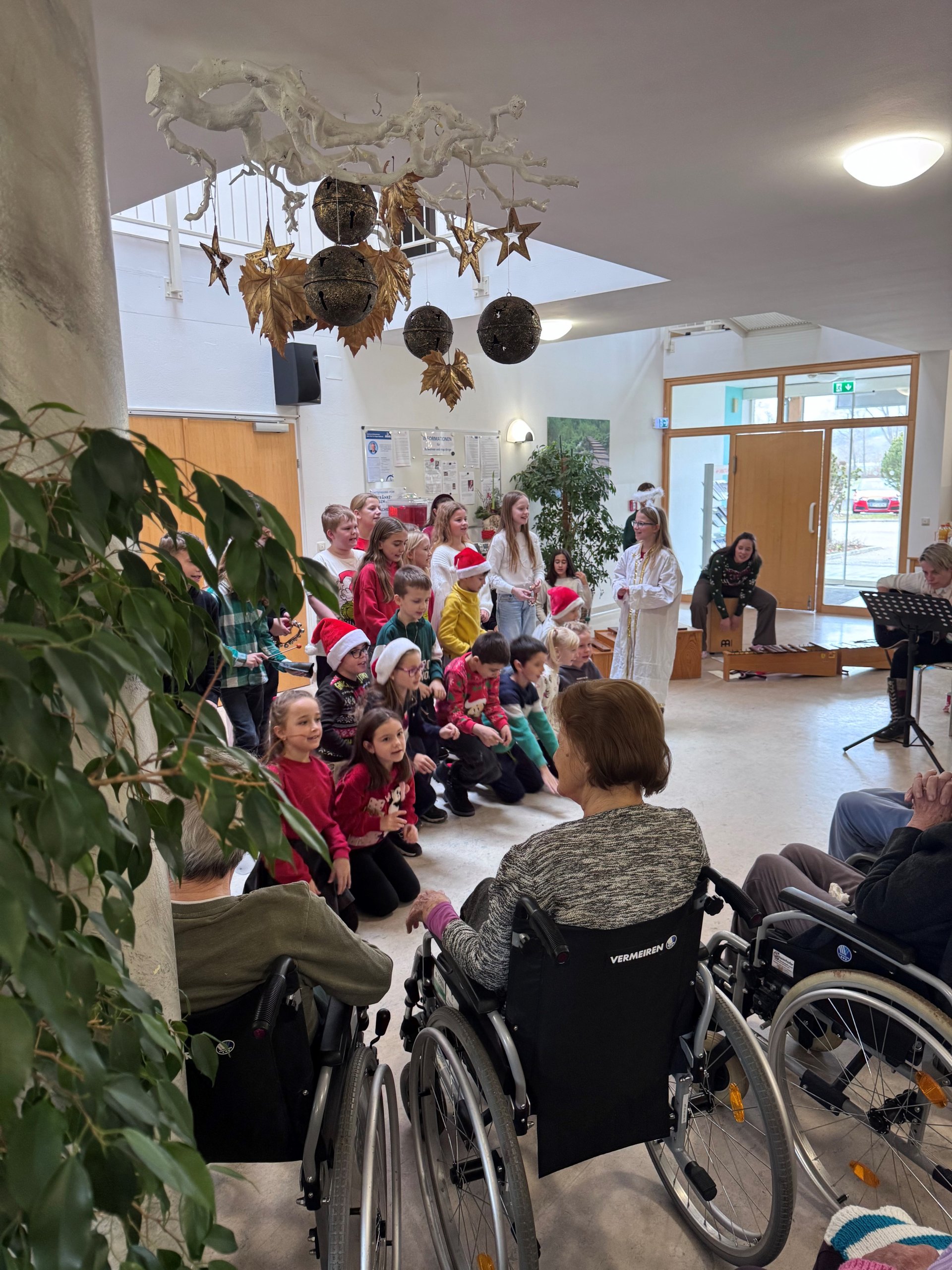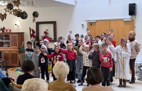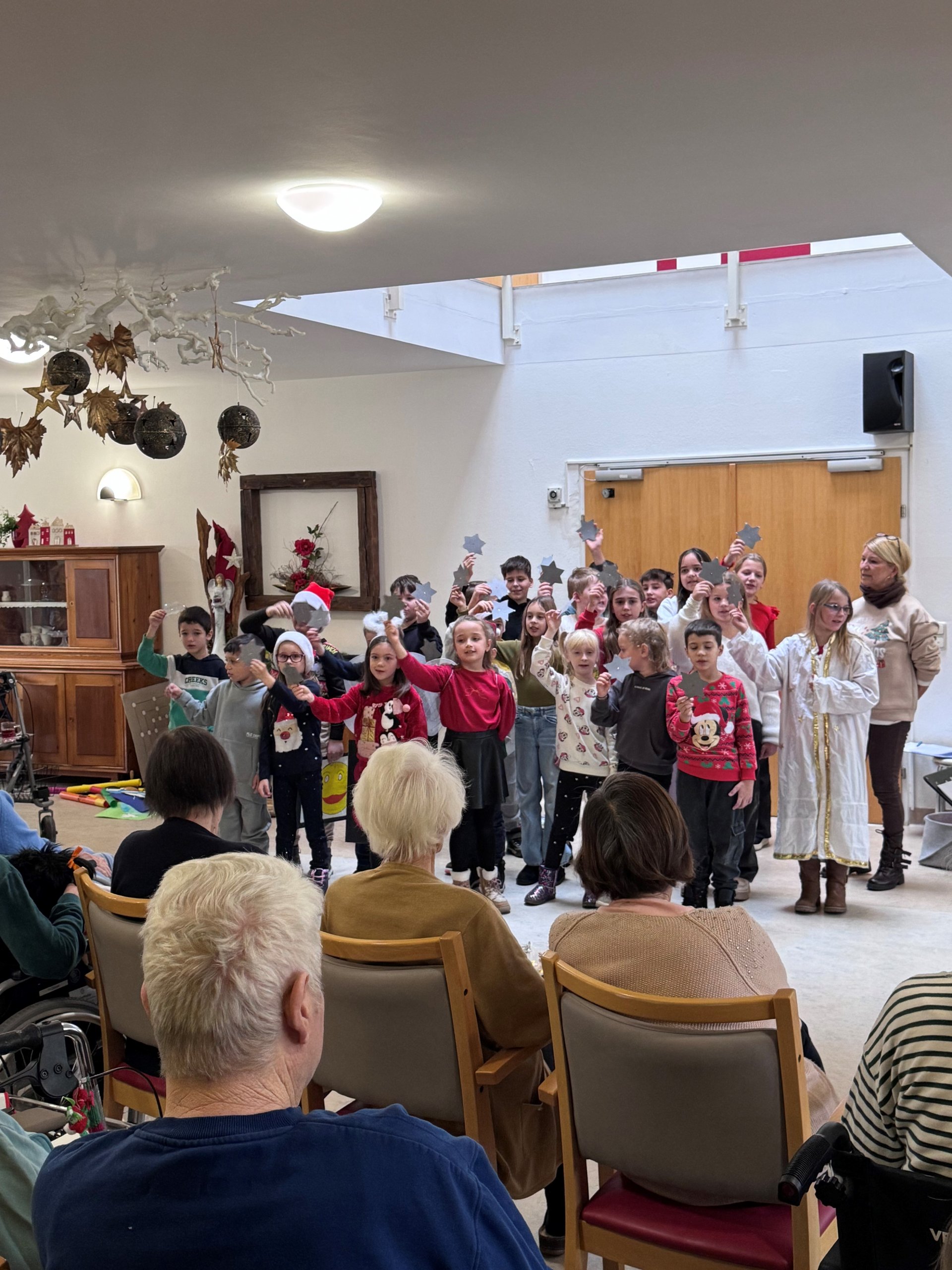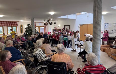 In Kärnten sagt man bekanntlich „beim Reden kommen die Leute zusammen“, so hat auch das SeneCura St. Veit an der Glan im Rahmen einer Veranstaltung für Angehörige es geschafft, eine hoffentlich dauerhafte Kooperation mit der Volksschule St. Veit/Glan einzurichten. Die Tochter einer Angehörigen ist Lehrerin in der Schule und hat uns angeboten, mit den Schulkindern auf Besuch zu kommen und bei vielerlei Aktivitäten zu unterstützen. Der erste geplante Termin fand in der Adventzeit statt, wo uns ein Chor aus Kindern der ersten und vierten Klasse gemeinsam eine Stunde mit internationalen und eigens für uns umkomponierten Weihnachtsliedern und Gedichten den Vormittag gestaltet hat.