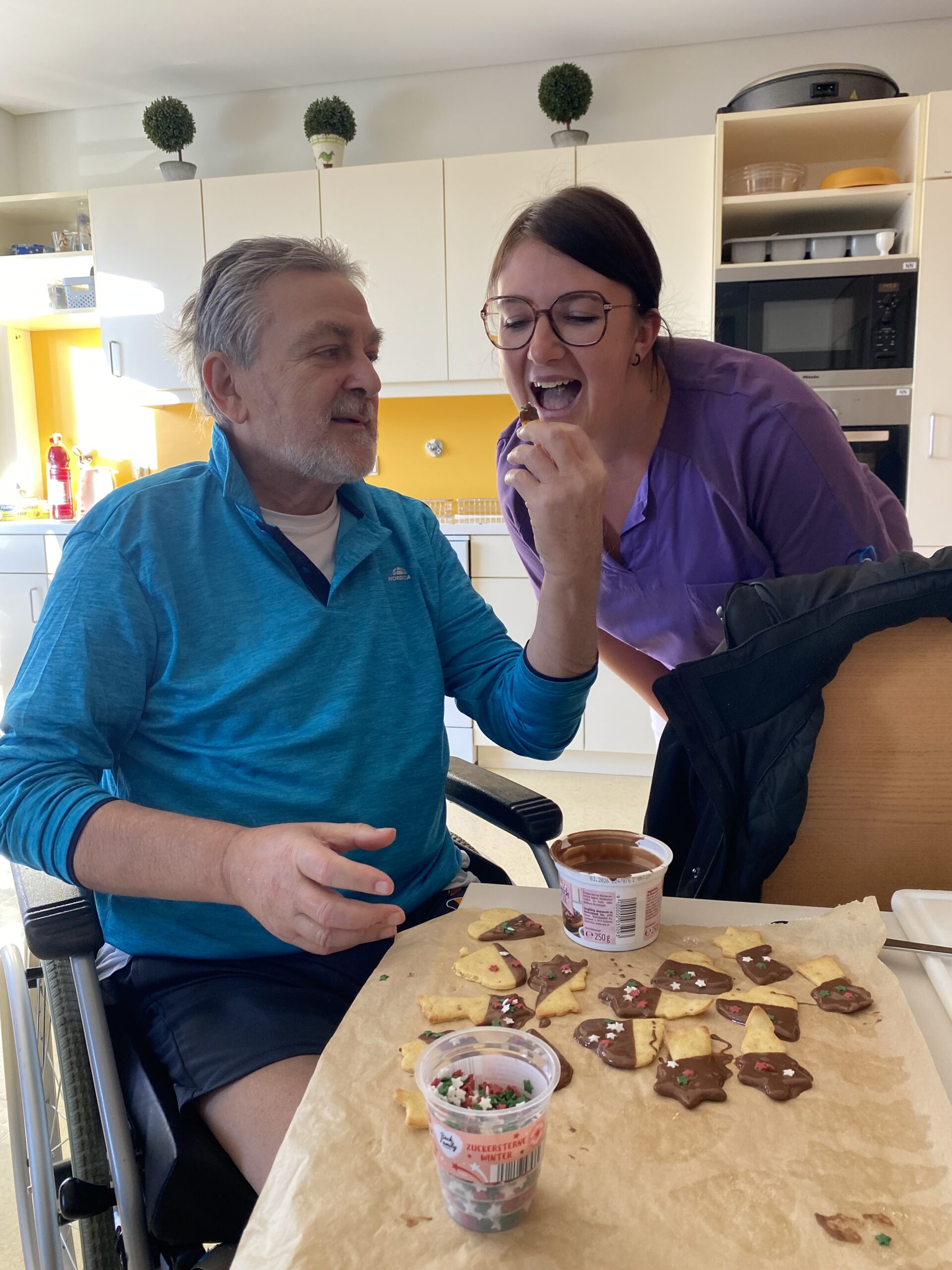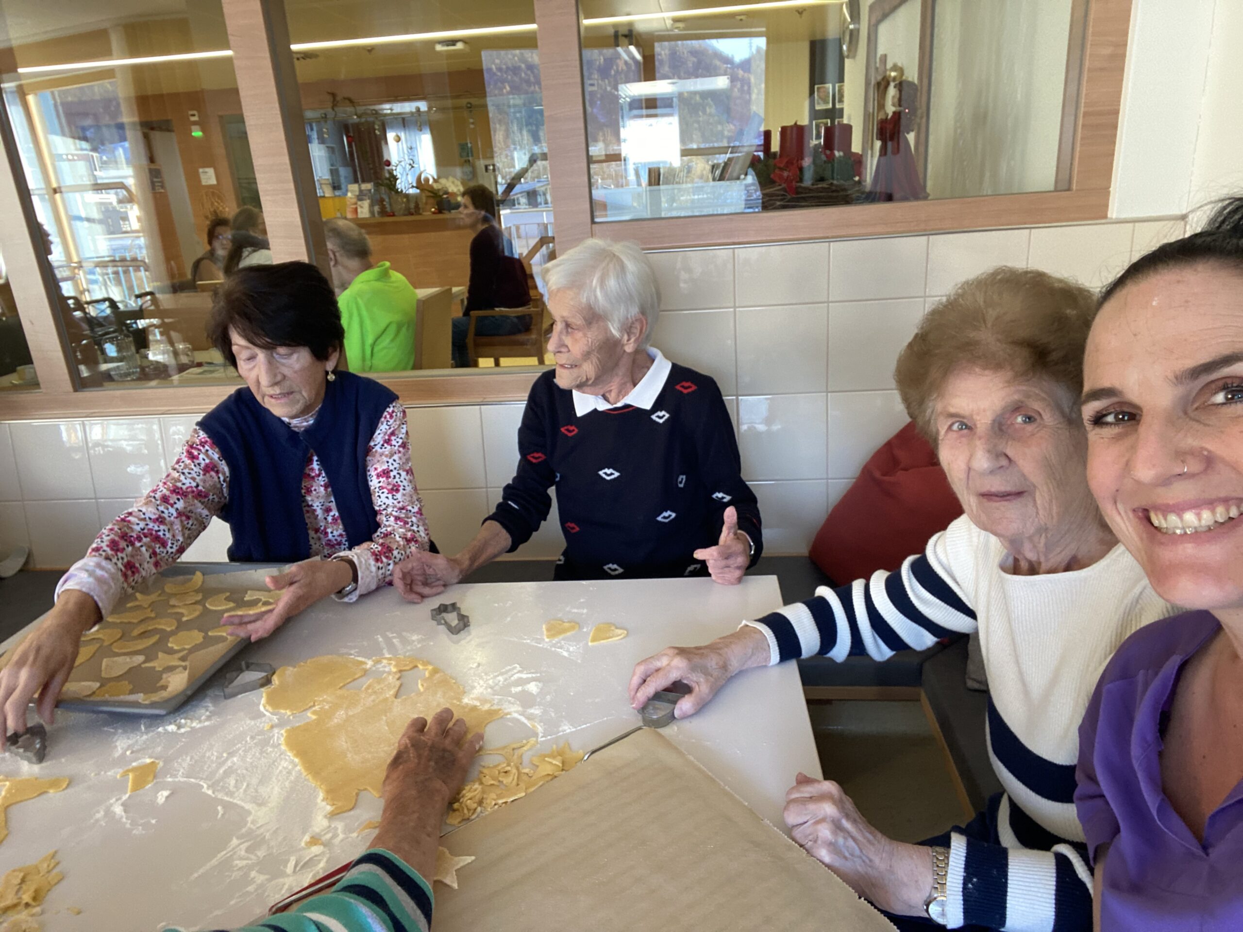Den Startschuss machte PA Katrin, die als passionierte Keksebäckerin bekannt ist und ihr Hobby mit den Bewohner:innen teilt. „Man hat bei den Bewohner:innen die Freude am Mitmachen so richtig angesehen und wir hatten richtig viel Spaß.“, freut sich Initiatorin Katrin über die rege Teilnahme. Und auch bei der Verköstigung war der Andrang groß.