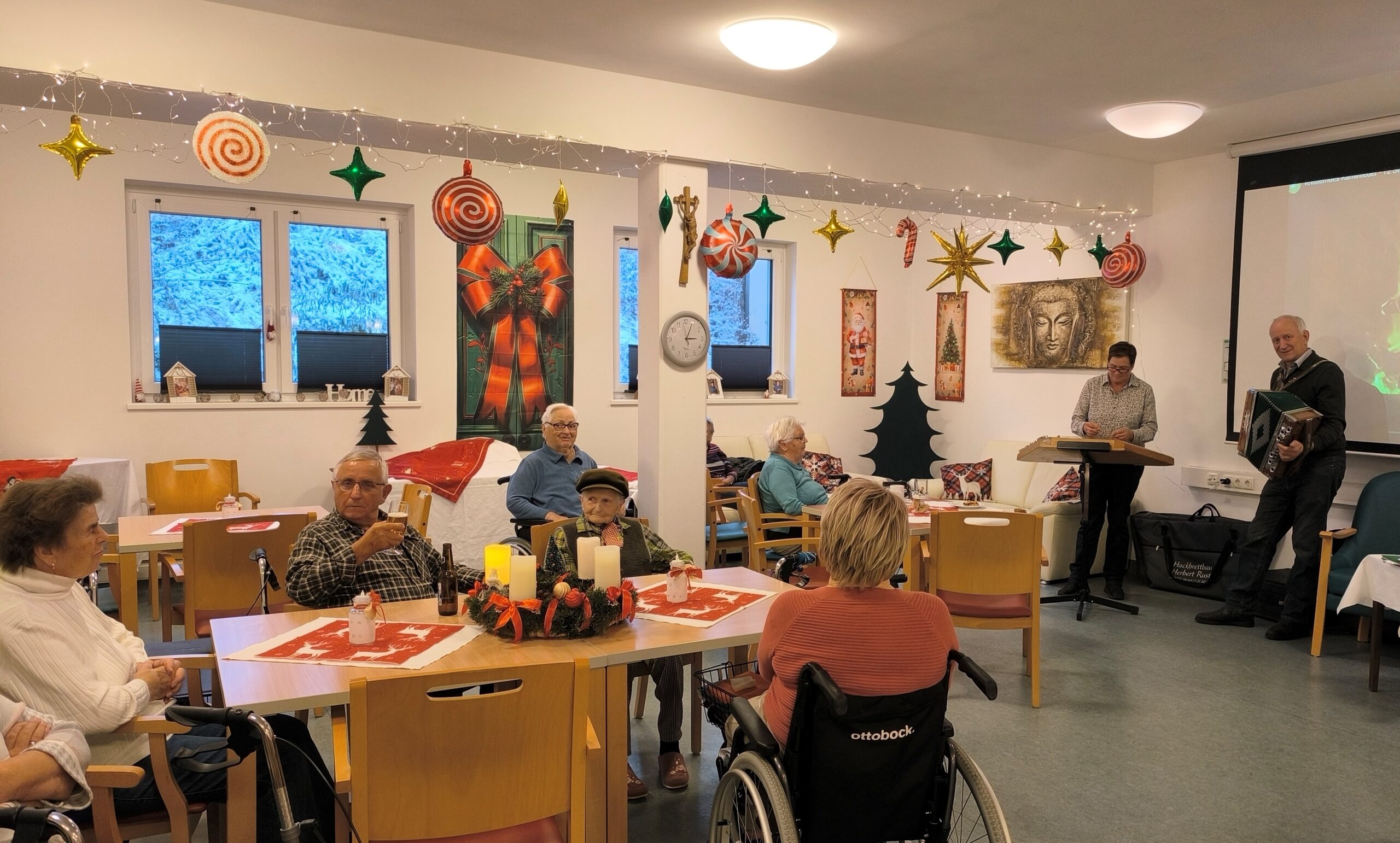 Eine besinnliche Adventfeier fand kürzlich im SeneCura Sozialzentrum Kammern mit den Bewohner:innen des Hauses statt. Mit angenehmer Vorweihnachtsmusik, rührenden Lesungen von Mundartgedichten, köstlichen Kekserl und Kaffee verbrachten die Anwesenden ein gemütliches Beisammensein. Es war eine rundum gelungene Adventfeier, die von Spaß und vorweihnachtlicher Freude geprägt war.