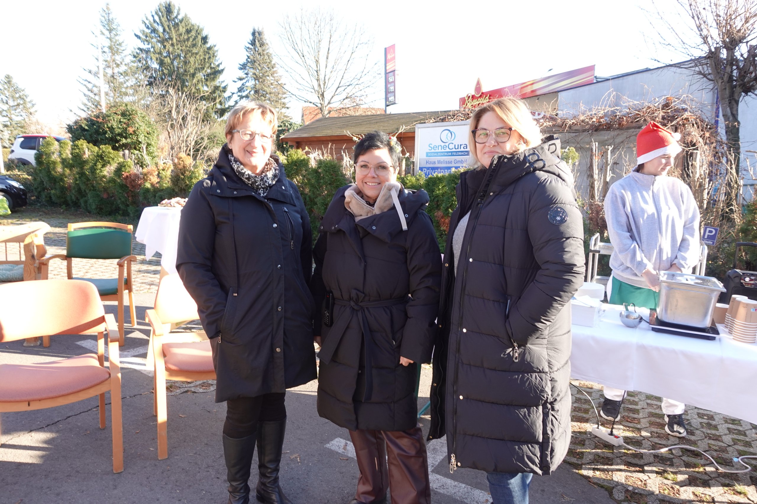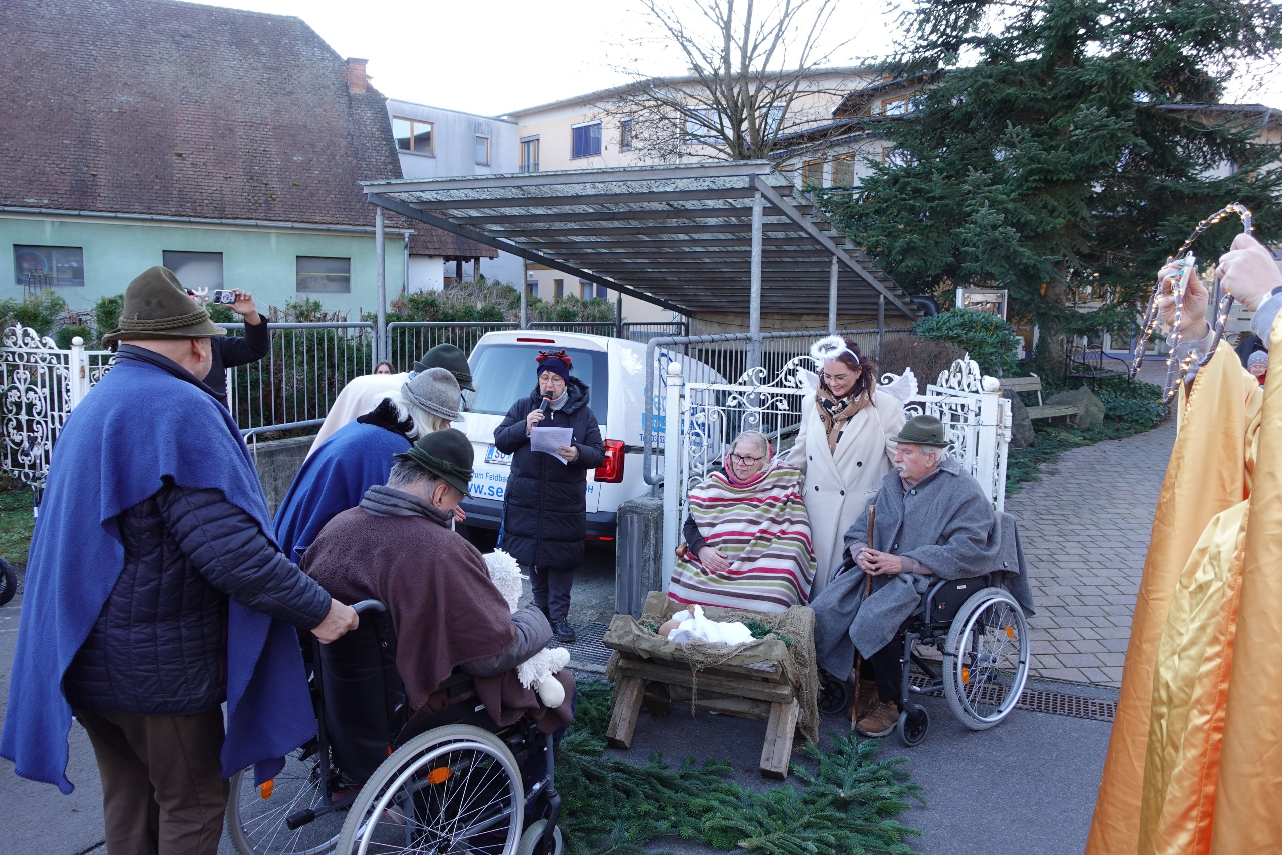 Der Advent hat im SeneCura Sozialzentrum Feldbach Einzug gehalten. Am Parkplatz des Sozialzentrums haben Bewohner:innen, Mitarbeiter:innen und Angehörige ein Adventknistern abgehalten – mit Glühwein und Punsch, selbstgemachten Weihnachtskeksen sowie leckeren Zimtschnecken. Es gab auch kräftige Gulaschsuppe zum Aufwärmen. Die Bewohner:innen haben zusammen mit Lehrling Leoni Weihnachtsartikel gebastelt – welche verkauft wurden. Auch Bewohnerin Maria Konrath Maria hat ihre selbst gestrickten Puppengewänder verkauft. Besonderes Highlight war das von den Bewohner:innen aufgeführte Krippenspiel. Dies wurde von den Seniorenanimateurinnen Sabine und Eva und Fitnesstrainerin Brigitta mit den Bewohner:innen einstudiert. Rosemarie Puchleitner hat uns als Gemeinderätin von Feldbach in Vertretung des Hrn. Bürgermeisters besucht.