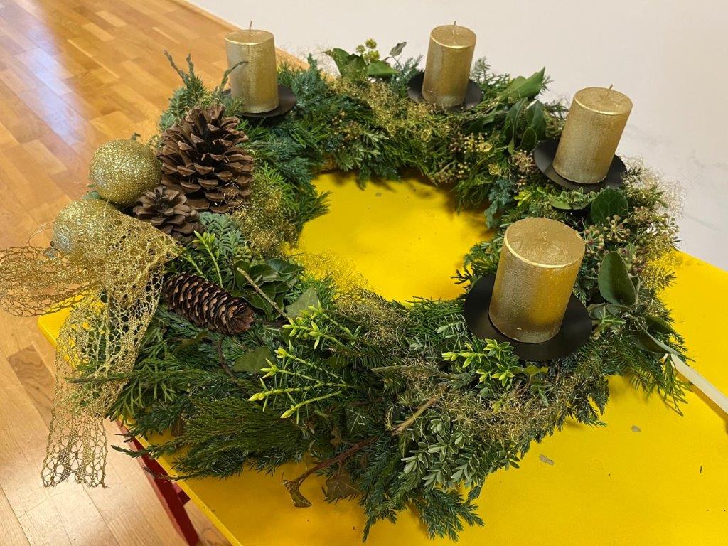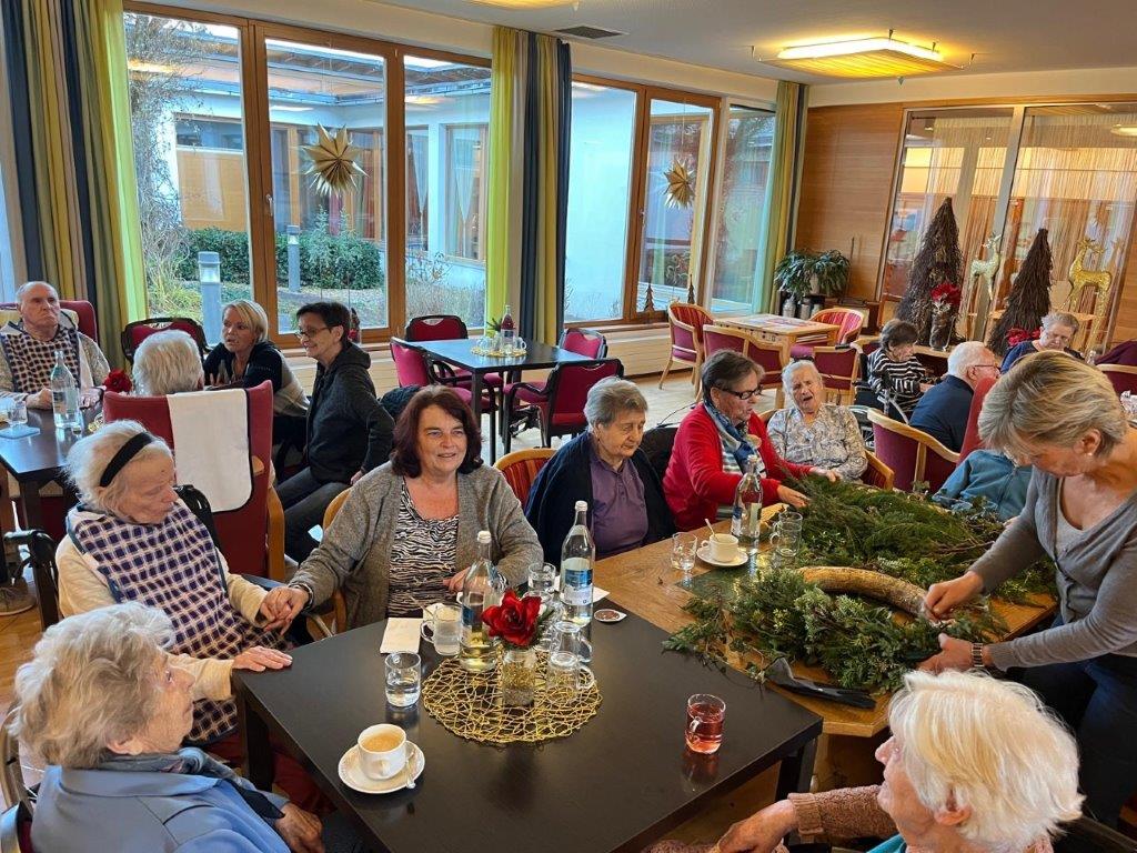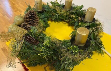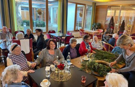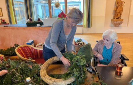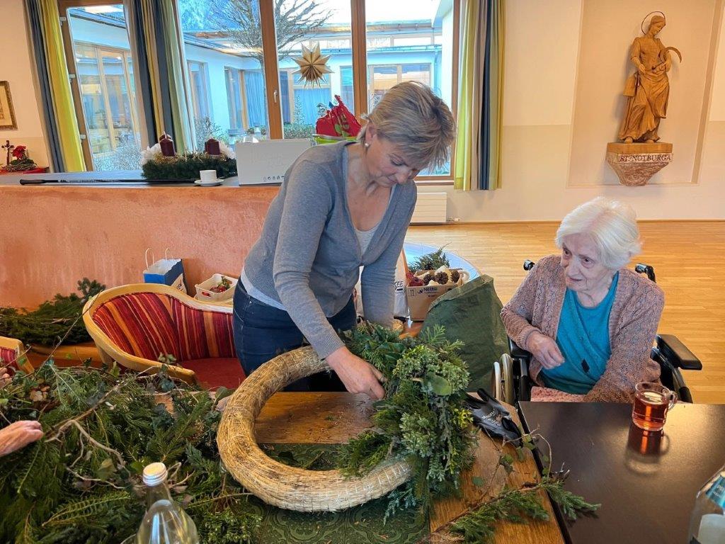 Kurz vor dem ersten Adventsonntag wurden im SeneCura Sozialzentrum Eben wunderschöne Adventkränze und -gestecke gebunden. Gemeinsam mit Hanni wurden das Grünzeug zu tollen Kränzen gebunden und diese dann reichlich dekoriert. Dabei kam bei allen Teilnehmer:innen schon vor-weihnachtliche Stimmung auf und alle freuen sich auf einen besinnlichen Advent.