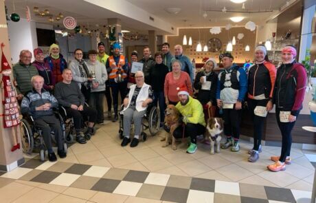 Beim diesjährigen Adventlauf wurde im Rahmen einer Charity Aktion für die kleine Anna Katharina aus Trofaiach gesammelt, die mit einem schweren Herzfehler geboren wurde und einige Mitarbeiter:innen des SeneCura Sozialzentrums Kammern nahmen teil. Team Laufendhelfen und der Bürgermeister Karl Dobnigg als Unterstützer, organisieren jährlich diese wertvolle Veranstaltung für Familien. Trotz Schneefall und kaltem Wind starteten die tapfereren Läufer:innen um 07:30 Uhr in Wald am Schoberpass, um in den Gemeinden bis nach Leoben Spenden für Anna zu sammeln. Die Bewohner:innen und Hausleitung Franziska Steinberger erwarteten die Läufer:innen mit Applaus und einer kleinen Stärkung bevor es weiter Richtung Hauptplatz Leoben ging, wo die Spenden Anna Katharina und ihrer Familie übergeben wurden.