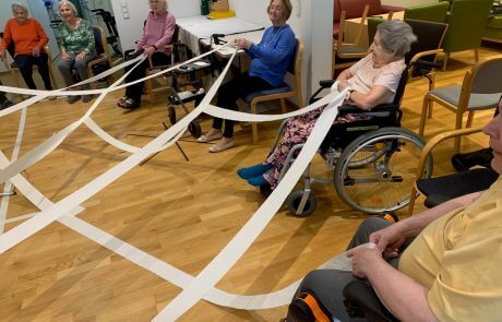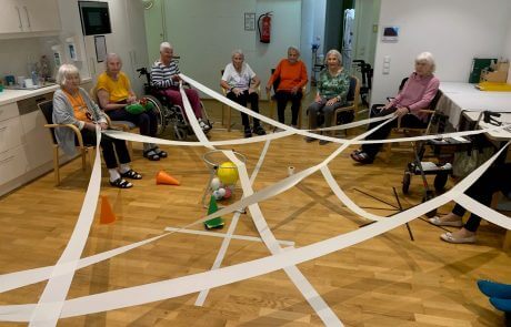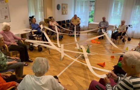 Im SeneCura Sozialzentrum Dornbirn fand kürzlich eine Aktivierungsrunde mit unserem Kollegen Alex aus dem Sozialdienst statt. Da mehrere neue Bewohnerinnen und Bewohner ins Haus eingezogen sind, wurde die Stunde gleich mit einem spielerischen Kennenlernen gestartet: Beim „Rollenspiel“ warfen sich die Teilnehmerinnen und Teilnehmer einen Ball zu und stellten sich gegenseitig vor.