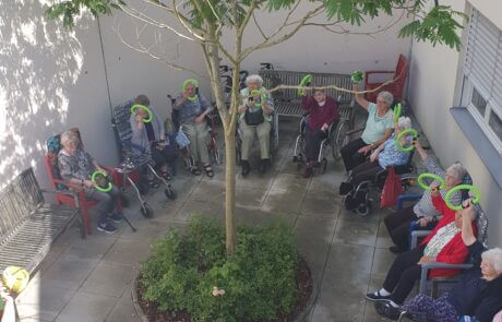 Im Zuge des schönen Wetters fand die wöchentliche Aktivität des SeneCura Sozialzentrums Gratkorn unlängst im Freien statt. Mit Smovey-Ringen aktivierten die Seniorinnen und Senioren ihre Muskeln und sportelten um die Wette. Die Bewohner:innen genossen die Bewegungsstunde bei dem angenehmen Wetter sehr und beteiligten sich aktiv. Auf kommende Aktivitäten an der frischen Luft freuen sich die Bewohner:innen schon sehr.
