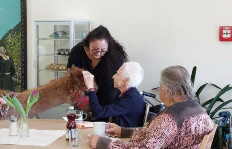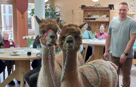 Fredi und Diego, zwei der niedlichen Tiere von „Achensee-Alpaka“ besuchten letztens die Bewohner:innen des SeneCura Sozialzentrums Annakirchl, um ihnen eine besondere Zeit zu schenken. Mit ihrem weichen Fell und der liebevollen Art verbreiteten sie viel Freude und brachten alle Gesichter zum Strahlen. Die Seniorinnen und Senioren genossen die außergewöhnliche, aber bereichernde Begegnung und freuen sich auf ein hoffentlich baldiges Wiedersehen.