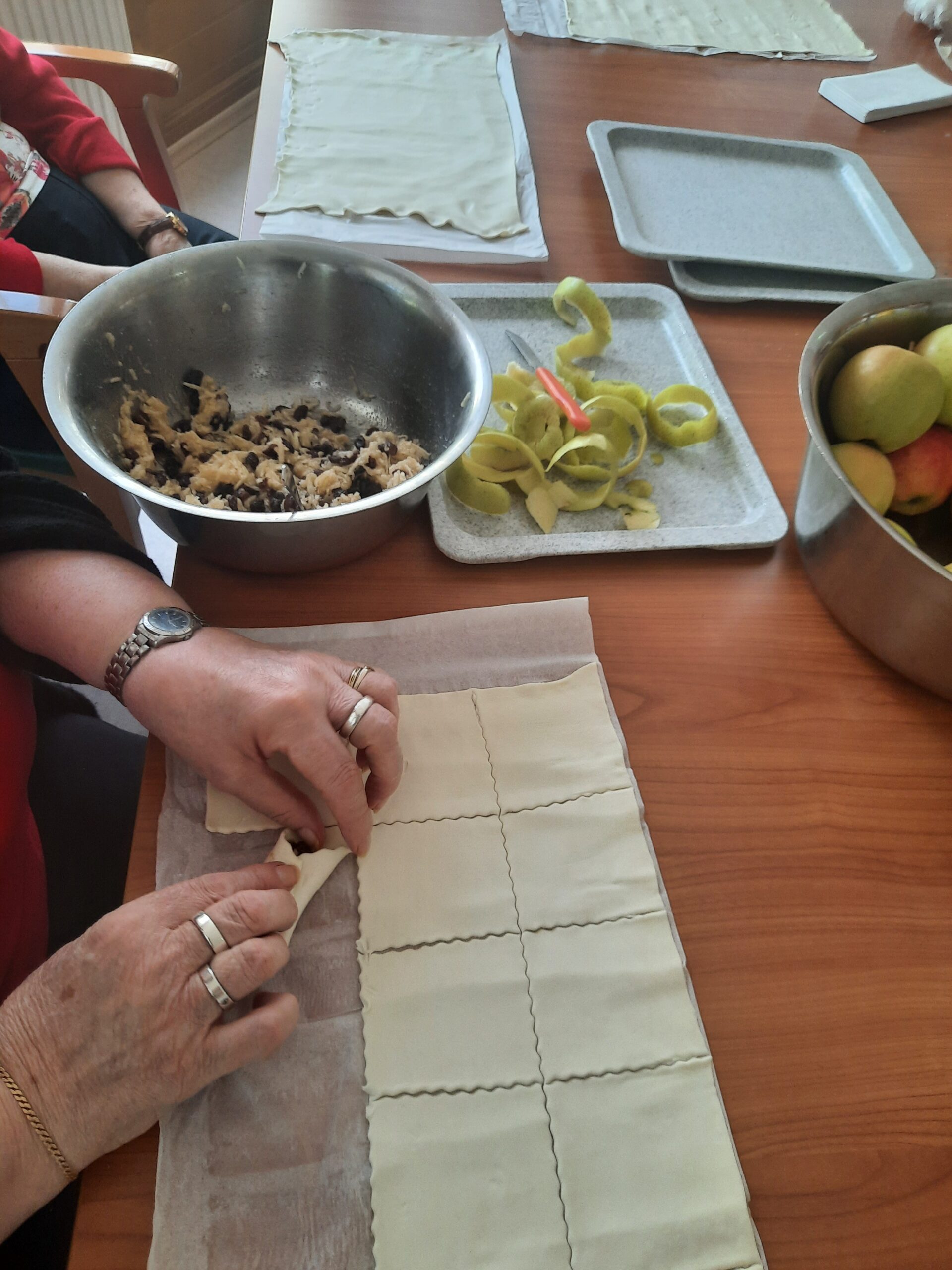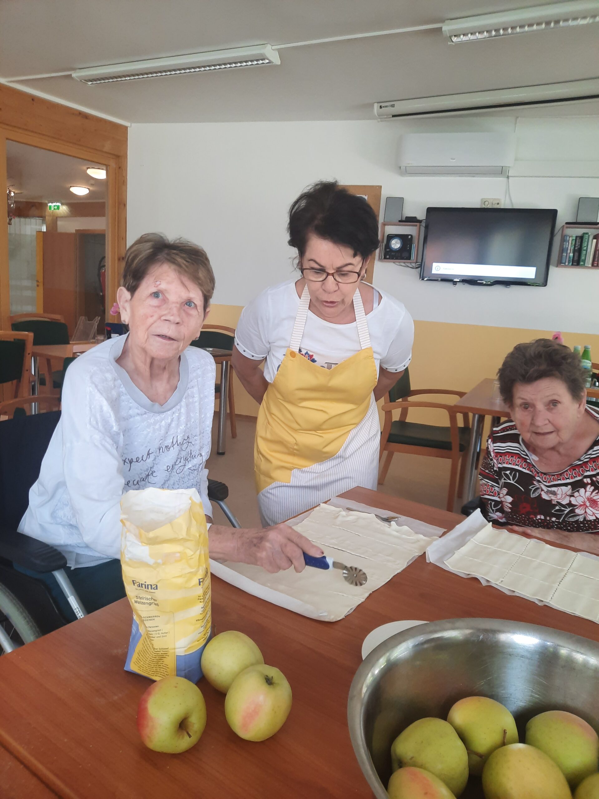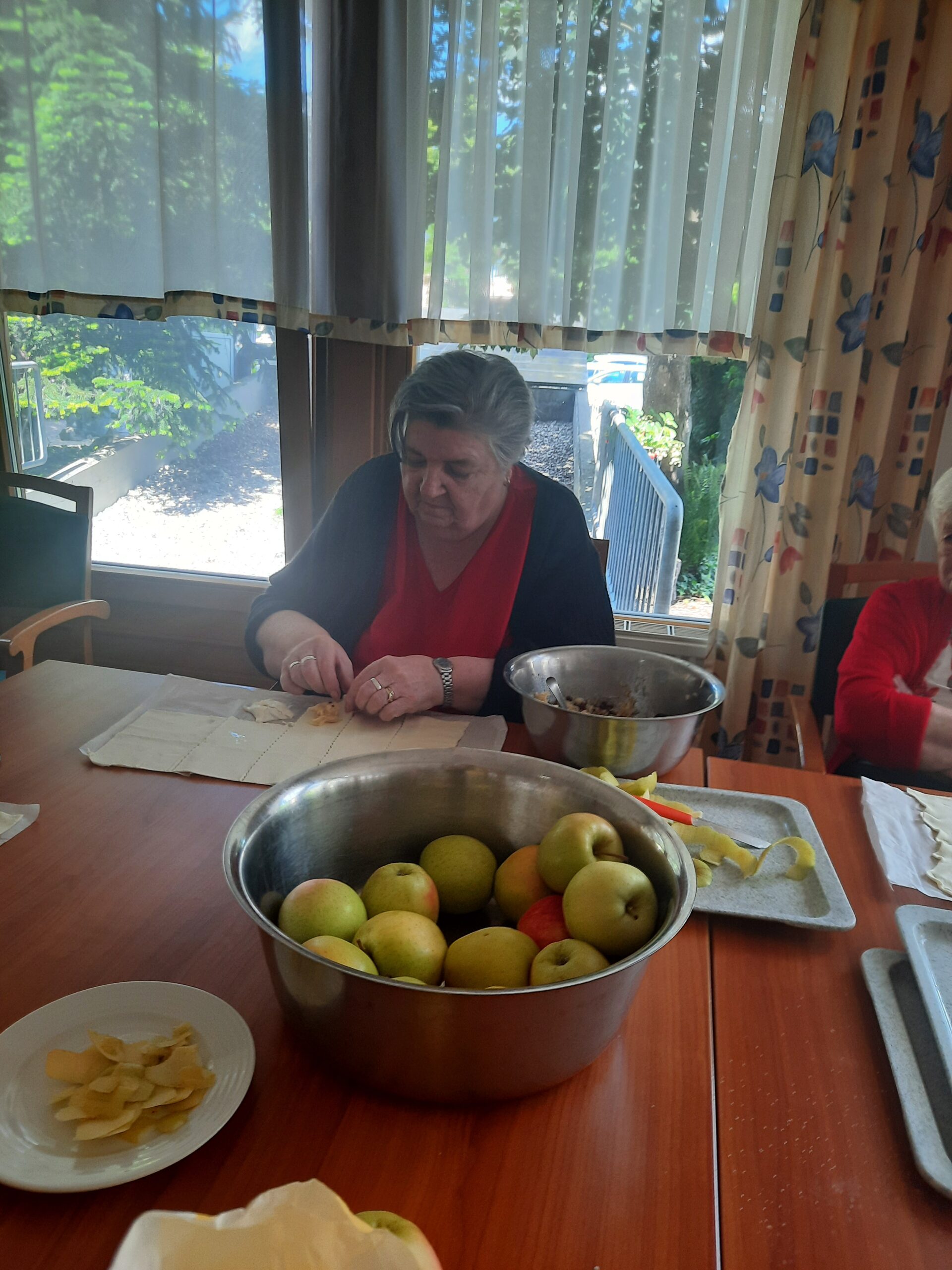Das SeneCura Sozialzentrum Feldbach wurde kürzlich zu einer Backstube umfunktioniert, als die Bewohner:innen köstliche Apfel- und Birnentascherl gebacken haben. Die ehrenamtlichen Mitarbeiter:innen sowie die Tochter einer Bewohnerin, Eva Schweigberger, haben fleißig bei der Zubereitung des Gebäcks geholfen. Gemeinsam wurden unzählige Äpfel sowie Birnen geschält und in weiterer Folge zurecht geschnibbelt. Anschließend wurde ein Tascherl nach dem anderen mit Liebe finalisiert. Die frischgebackenen Apfel- sowie Birnentascherl dufteten nicht nur hervorragend, sondern schmeckten dazu auch noch köstlich.