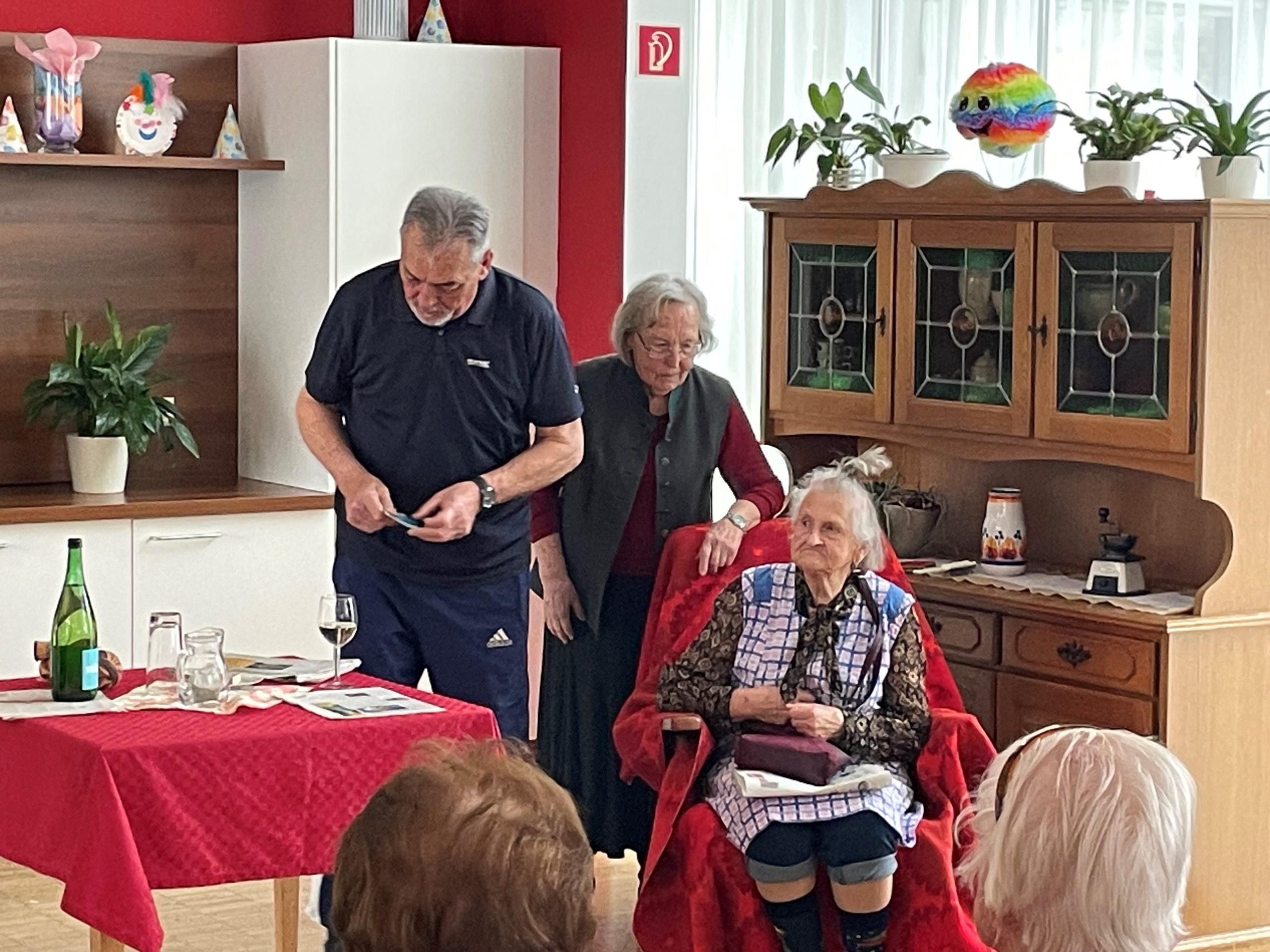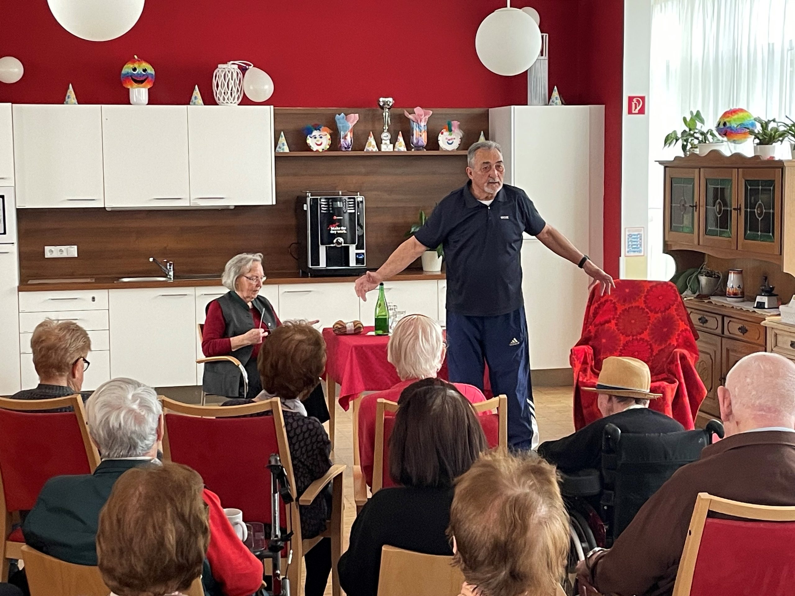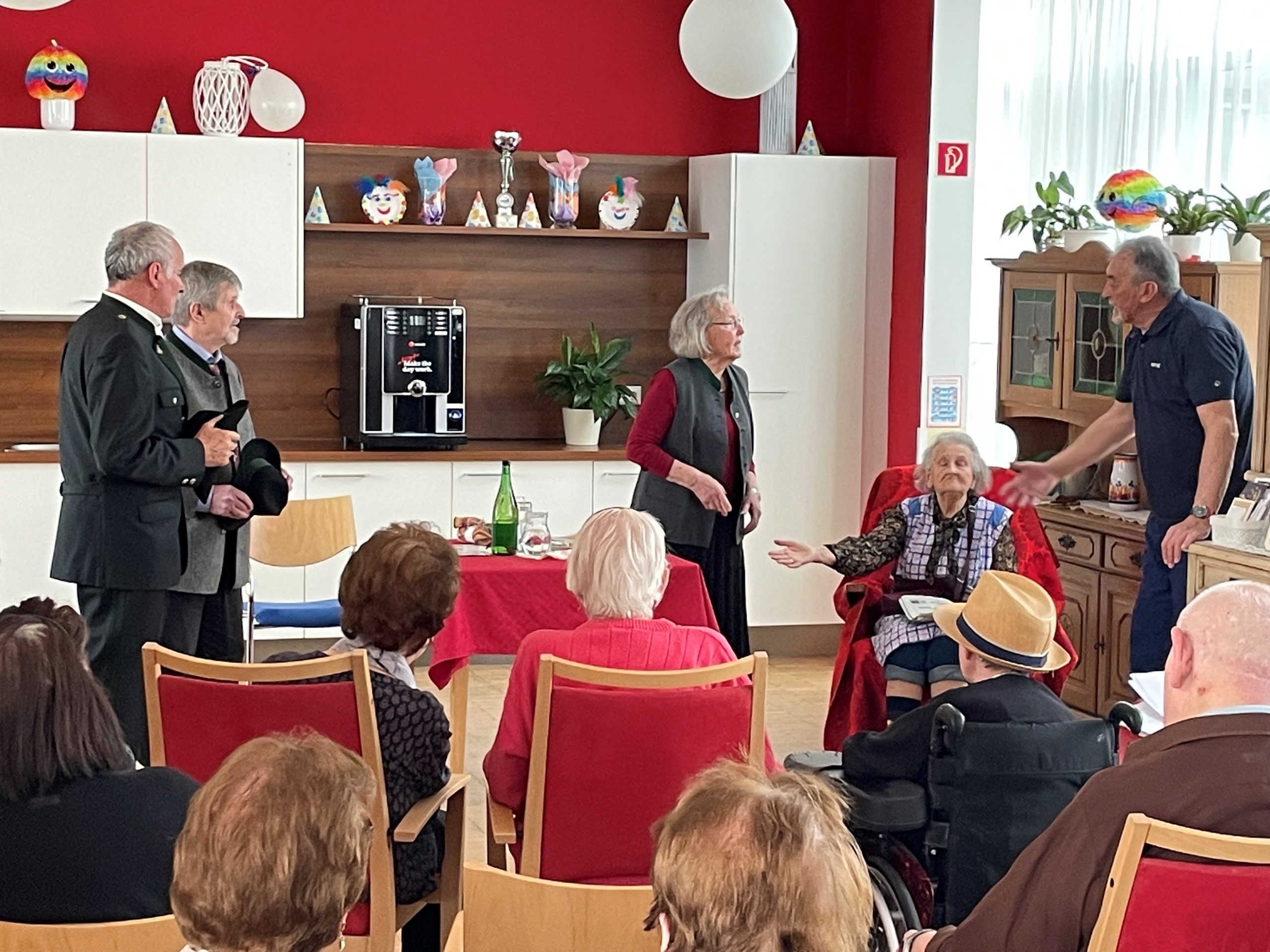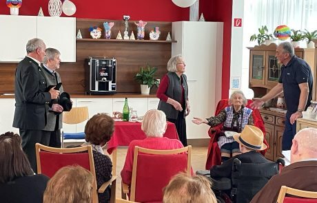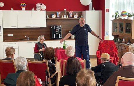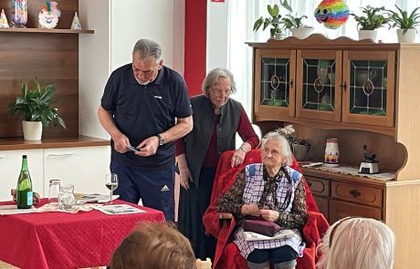 Die ortsansässige Seniorentheatergruppe Stainz „Senitheg“ hat auch heuer eine Aufführung für die Bewohner:innen des SeneCura Sozialzentrums Stainz einstudiert und alle mit dem Stück „die Erbtante“ überrascht. Die Darsteller:innen Maria Geisler, Hilde Lesky, Toni Steinbauer, Sepp Steinbauer, Karl Stering und Souffleuse Berta Lampl haben dieses Stück sehr authentisch den Bewohner:innen vorgespielt. Der Text, der in Mundart gesprochen wurde, fand großen Anklang bei den Bewohner:innen und sie fühlten sich in ihre Jugendzeit zurückversetzt. Schon der Titel des Stückes lässt auf interessante zwischenmenschliche Verstrickungen und Gefühlsverwirrungen schließen. Sehr anschaulich und mit vollem Körpereinsatz gelang es ihnen, die Bewohner:innen zum Staunen und Lachen zu bringen. Am Ende hatten die Verwandten ihre Erbtante im Haus, das Sparbuch war leer und das Erbe gab sie zuvor ihren beiden Freunden für das Versprechen, ein schönes Plätzchen für ihren Lebensabend zu finden. Ein herzliches Dankeschön sprach Hausleitung Kathrin Hopfer der Theatergruppe Senitheg aus.