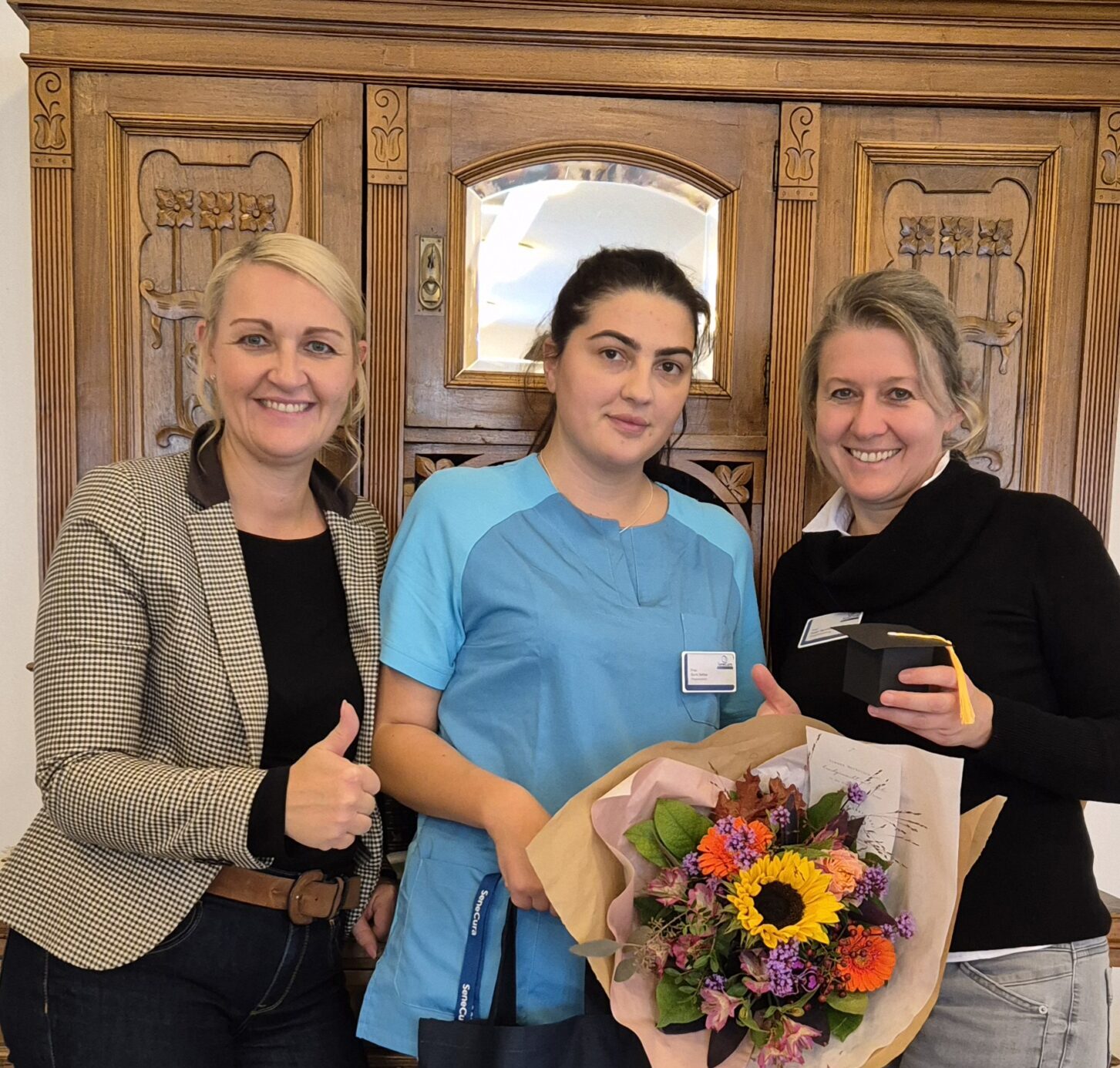 Die Mitarbeiterin des SeneCura Sozialzentrums Knittelfeld, Duric Dafina, startete ihre Pflegeassistentenausbildung im September 2023 im Rahmen der Pflegestiftung. Nach einem Jahr Theorie und Pflegepraxis hat sie die Ausbildung erfolgreich absolviert. Das Sozialzentrum Knittelfeld durfte Frau Duric als Stiftungsbetrieb recht herzlich zum Ausbildungsabschluss gratulieren.