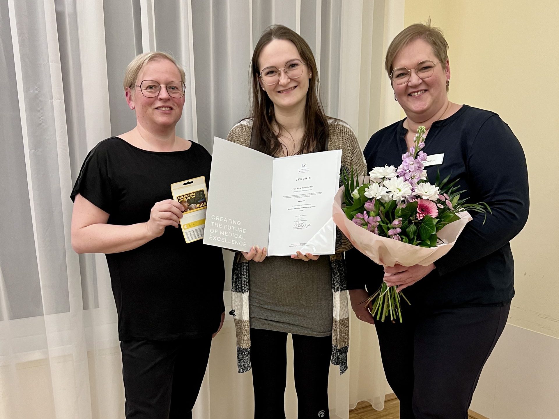 Das SeneCura Sozialzentrum Nikitsch gratuliert der Wohnbereichsleitung, Alina Kuzmits, herzlich zum erfolgreichen Ausbildungsabschluss im basalen und mittleren Pflegemanagement! Eine tolle Leistung – das Team des Hauses ist sehr stolz auf Alina und freut sich, dass sie mit Herz, Kompetenz und Elan das Team bereichert!