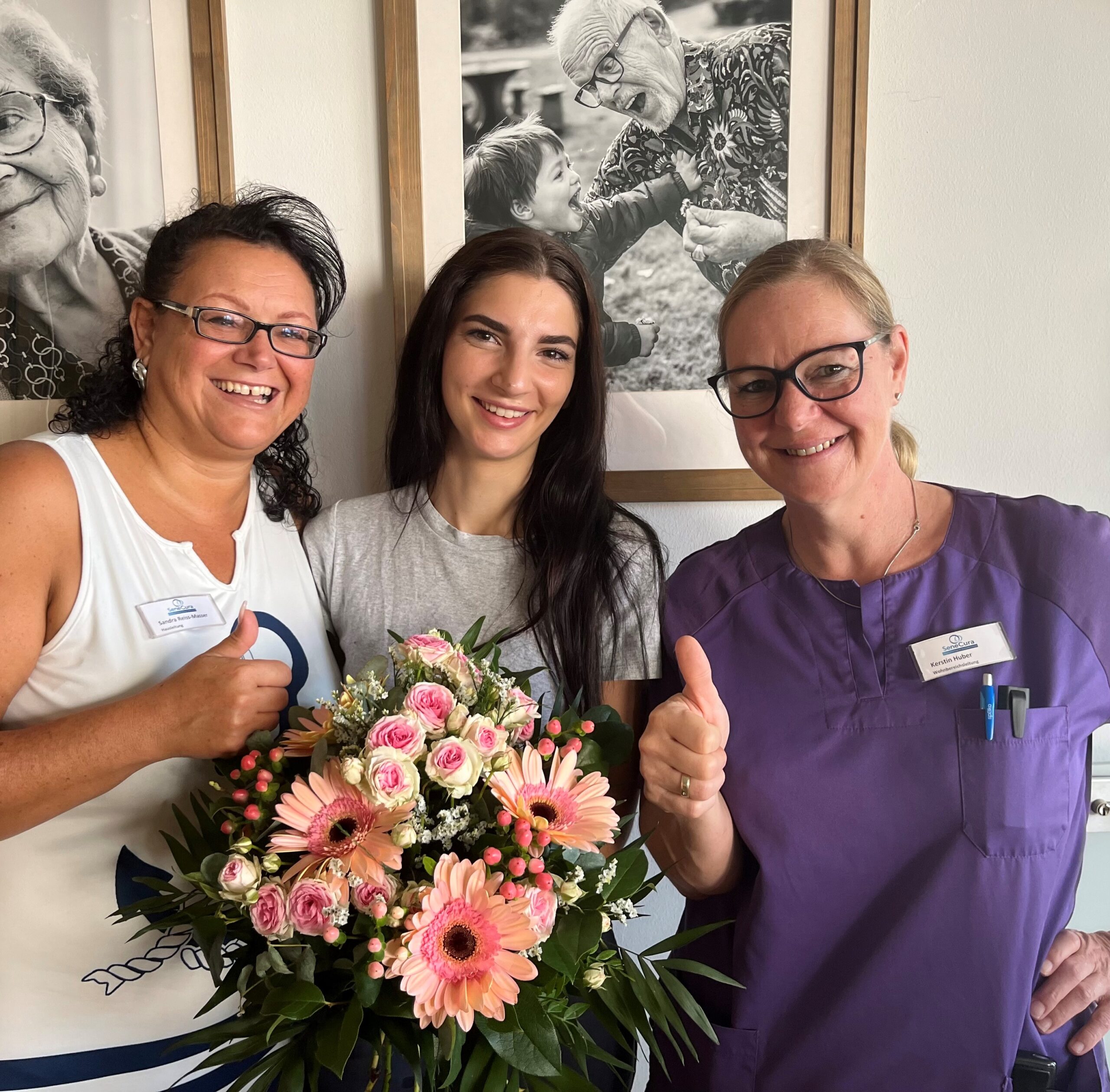 Die ZAM-Praktikantin des SeneCura Sozialzentrums St. Margarethen an der Raab, Elza Halimi, hat die Prüfung zur Pflegeassistenz erfolgreich bestanden. Die Hausleitung, Sandra Reiss-Masser sowie die Wohnbereichsleitung, Kerstin Huber, gratulieren Elza recht herzlich zu dieser hervorragenden Leistung.