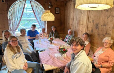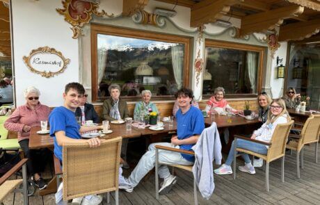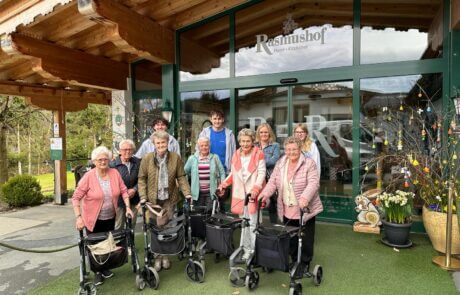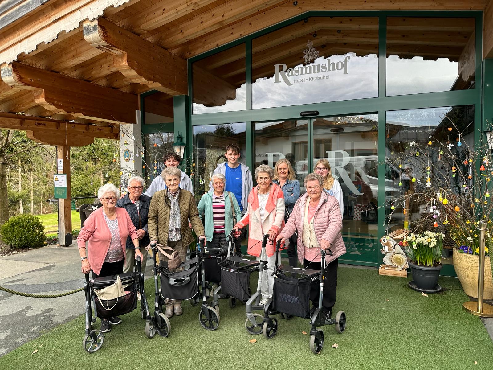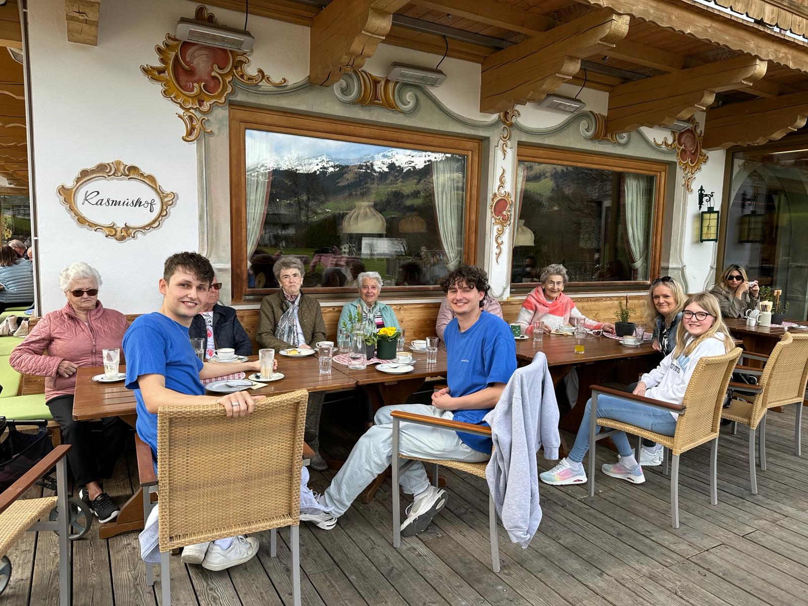 Letztens erlebten einige Bewohnerinnen des SeneCura Sozialzentrums Kirchberg in Tirol einen tollen Nachmittag, als sie begleitet von den Zivildiener Daniel und Thomas nach Kitzbühel zum Rasmushof fuhren. Im Hotel angekommen genossen die Ladies mit der Mitarbeiterin Trixi Kerschdorfer sowie den Zivildienern die gemeinsame Zeit bei köstlichen Kuchen, Getränken und tollen Gesprächen.