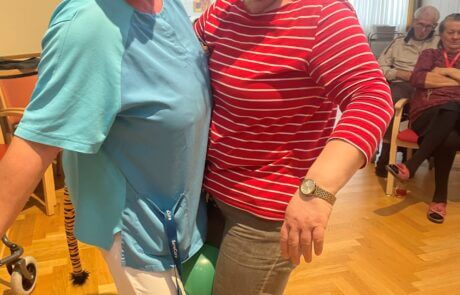 Bewohnerin Emilie Halwax mit Seniorenbetreuuerin Claudia Hofmann