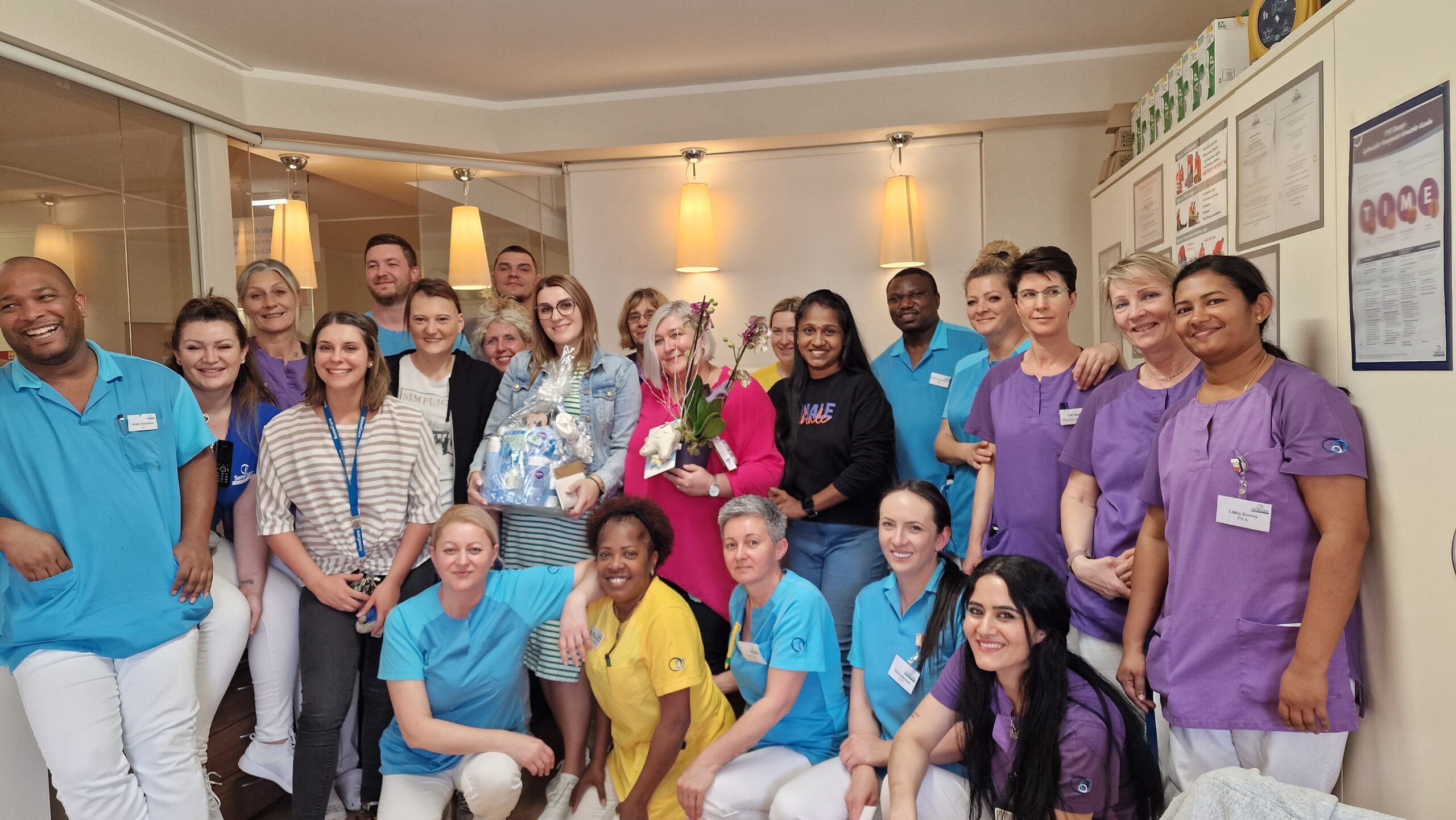 Vor kurzem wurde Natasa Malicevic, langjährige Mitarbeiterin im SeneCura Pflegezentrum Graz, in den Mutterschutz verabschiedet. Es wurde ihr vom Team eine Babytorte überreicht sowie Blumen, über die sie sich sehr freute. Bei Brötchen und süßen Naschereien wurde der neue Lebensabschnitt gefeiert.