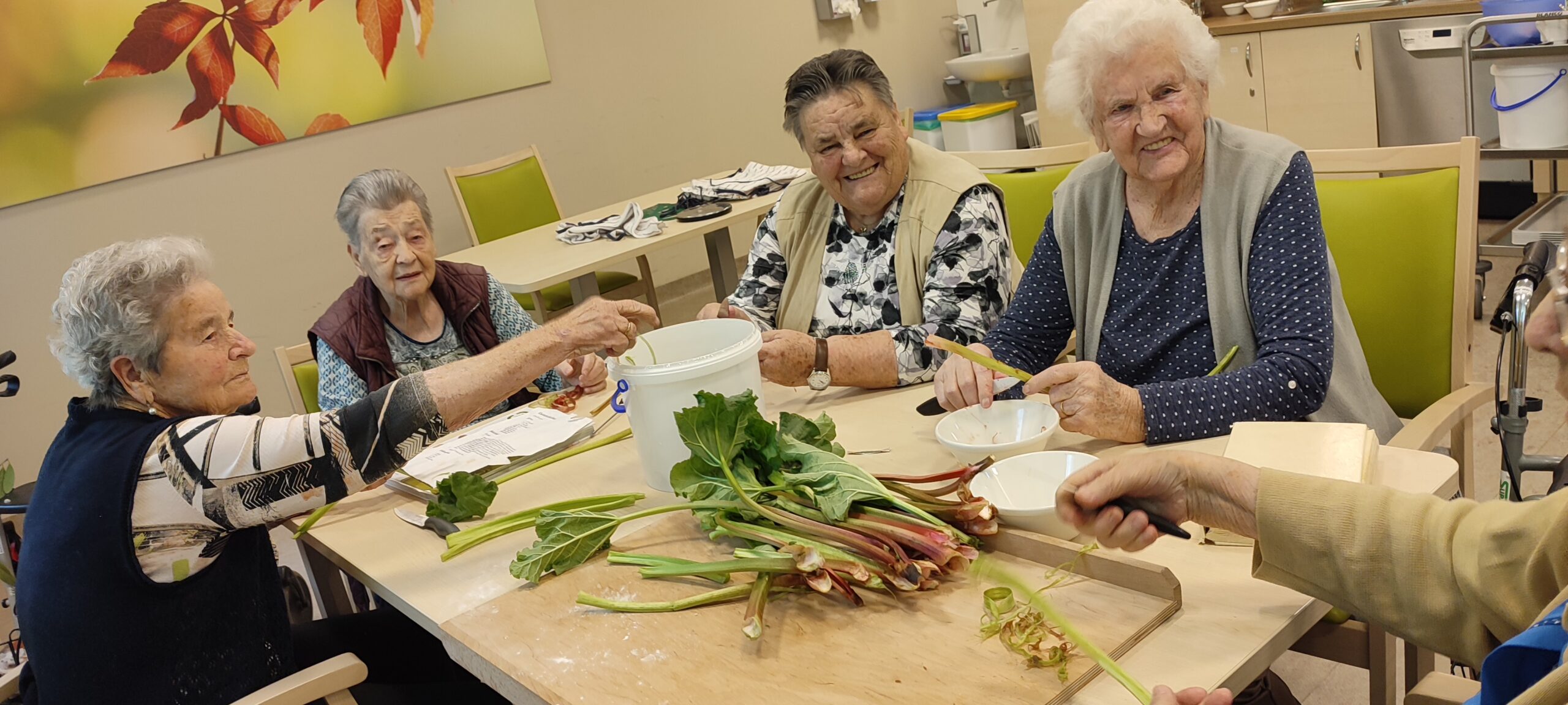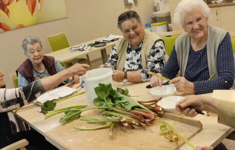 Die Bewohner:innen backen fleißig den Rhabarberkuchen.