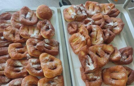 Kürzlich stellten die Bewohner:innen des SeneCura Pflegezentrums Schwarzau ihr Backtalent unter Beweis. Der Backnachmittag mit Dagmar hat für Furore gesorgt und alte Rezepte wurden von den Bewohner:innen neu definiert. Viele helfende Hände zauberten einen leckeren Rhabarberkuchen und einige Strauben. Der Duft des frischen Gebäcks verbreitete sich schnell im Haus und lockte die ein oder anderen Bewohner:innen zur anschließenden Kostprobe in den Speisesaal. Die süßen Rhabarberkuchen und Strauben wurden mit Kaffee am Nachmittag verspeist und ordentlich gelobt.