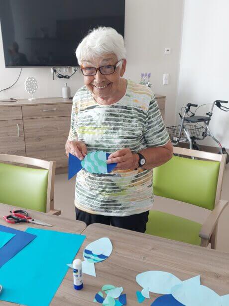 Die Bewohnerin hat Spaß beim sommerlichen Basteln.