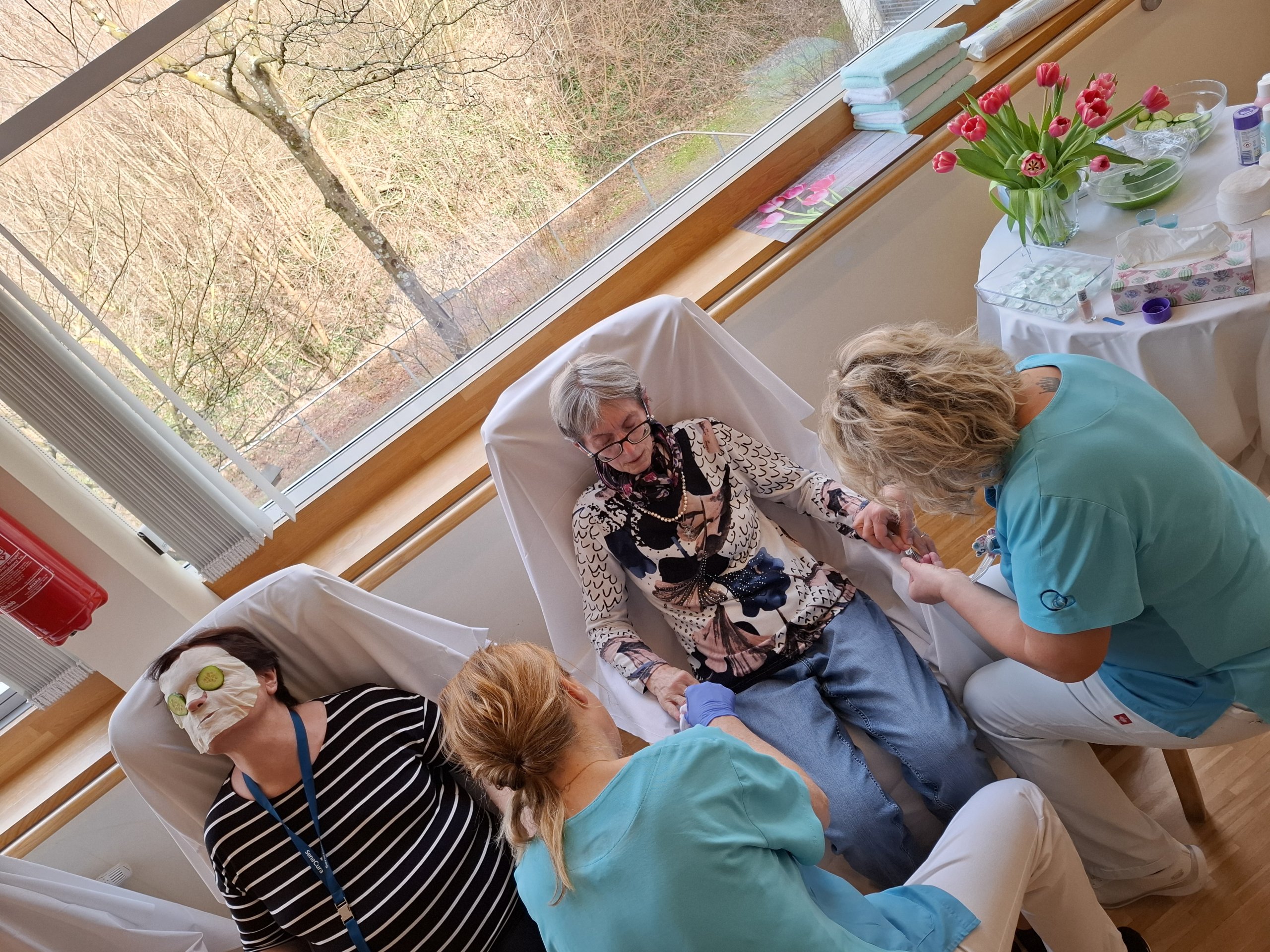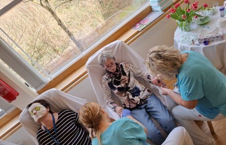 Im Beauty Salon von SeneCura Bludenz fand am 6. März der alljährliche „Frühjahrsputz“ statt: Die Bewohner:innen putzten sich für den Frühling heraus! Viel Wohltuendes wurde geboten: Handbad und -massage, Nägel lackieren, Gurkenmasken fürs Gesicht, Schminken, Augenbrauen faconieren, Fußbad mit anschließendem Eincremen und Massieren. In entspannender Atmosphäre und bei einem Gläschen Sekt haben alle den schönen Nachmittag genossen. Der Frühling kann kommen!