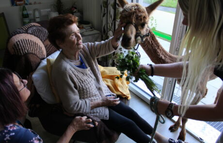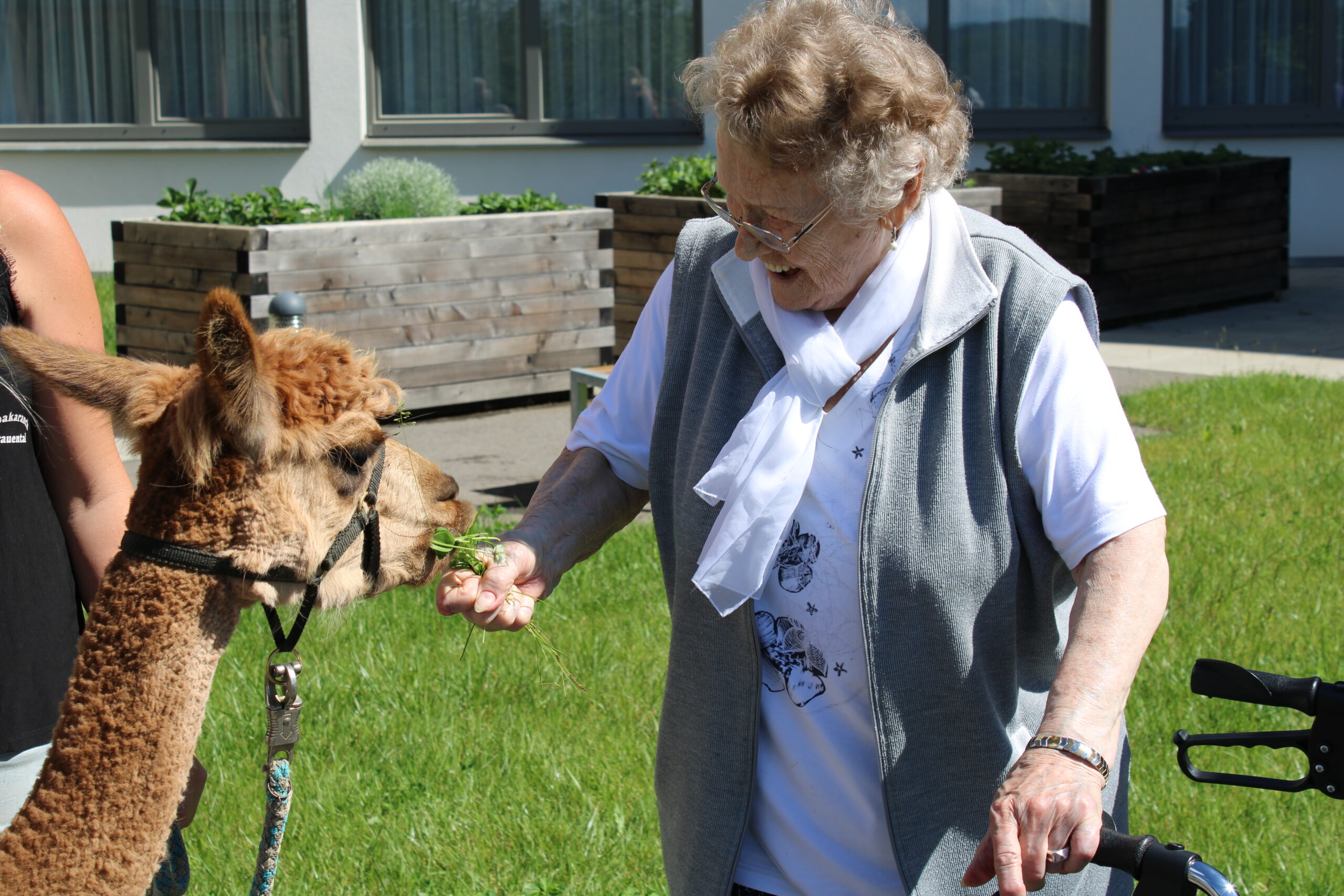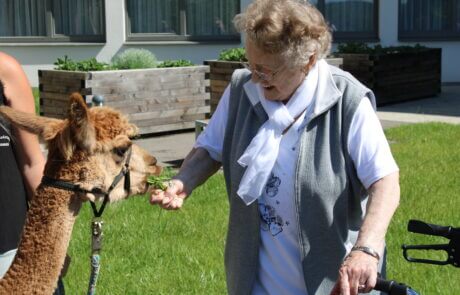 Der Bewohner:innen freuten sich, die Alpakas füttern zu können.