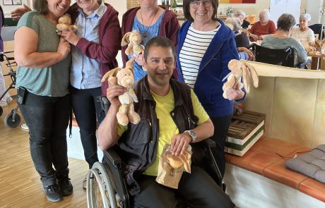 Das SeneCura Sozialzentrum Herrenrie durfte kürzlich einen ganz besonderen Besuch begrüßen. Der Verein Weihnachtsengel überraschte uns mit einer liebevollen Geste und bereitete unseren Bewohner:innen eine große Freude. Die Plüschhasen, Zopfhasen und kleinen Osterüberraschungen zauberten ein Lächeln auf die Gesichter unserer Senior:innen. Es war ein herzlicher Moment voller Wärme, Liebe und Dankbarkeit.