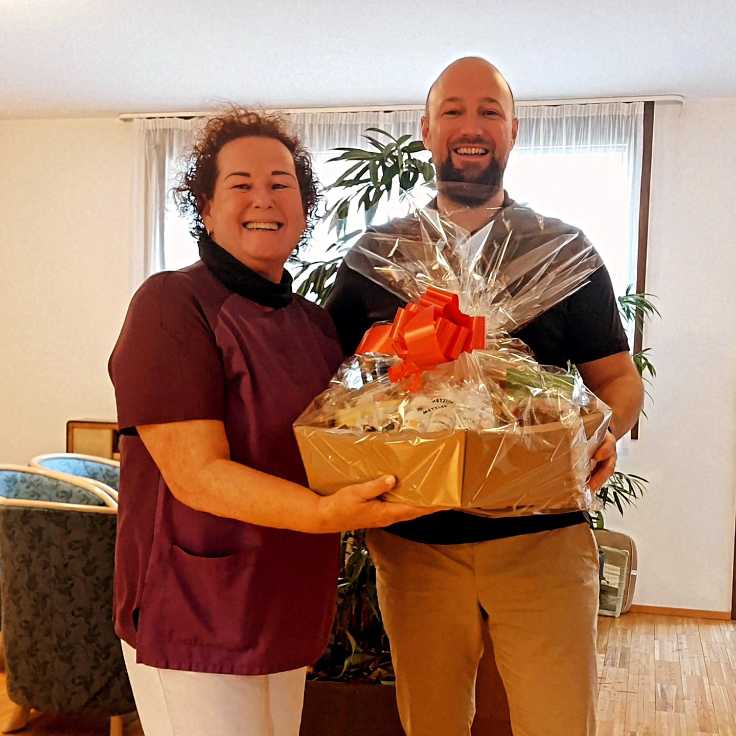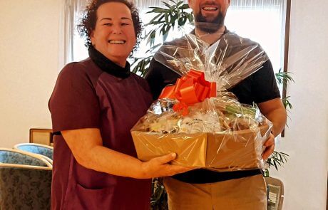 Hausleitung Emanuel Jori überreichte der Mitarbeiterin einen Geschenkskorb. „Ich möchte mich hiermit noch einmal recht herzlich bei dir für deine wertvolle Tätigkeit in unserer Pflegeeinrichtung bedanken. Vielen Dank für deinen jahrelangen Einsatz bei uns.“, so Jori.