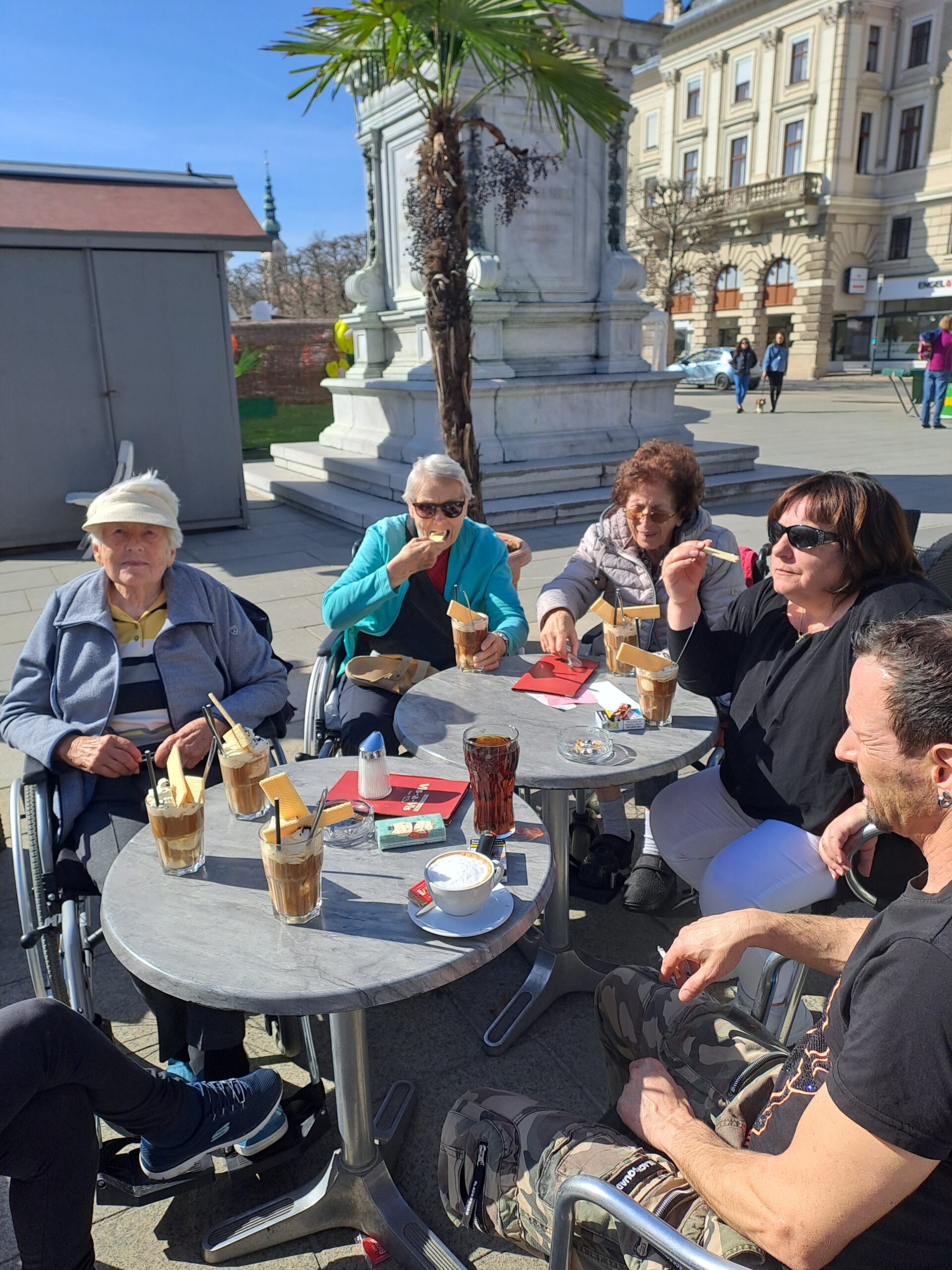 Am 20. März 2024 – Frühlingsbeginn, besuchten die Bewohner:innen des SeneCura Pflegezentrums Kreuzbergl den Ostermarkt in Klagenfurt. Das Wetter war traumhaft und die Bewohner:innen „schlenderten“ bei strahlend blauem Himmel, angenehmen Temperaturen und Sonnenschein über den Marktplatz. Die Seniorinnen und Senioren konnten wunderbare Osterdekorationen besichtigen, sowie verschiedene Käsesorten probieren. Natürlich musste auch eine Pause eingelegt werden, die mit einem köstlichen Eiskaffee in bester Gesellschaft abgerundet wurde.