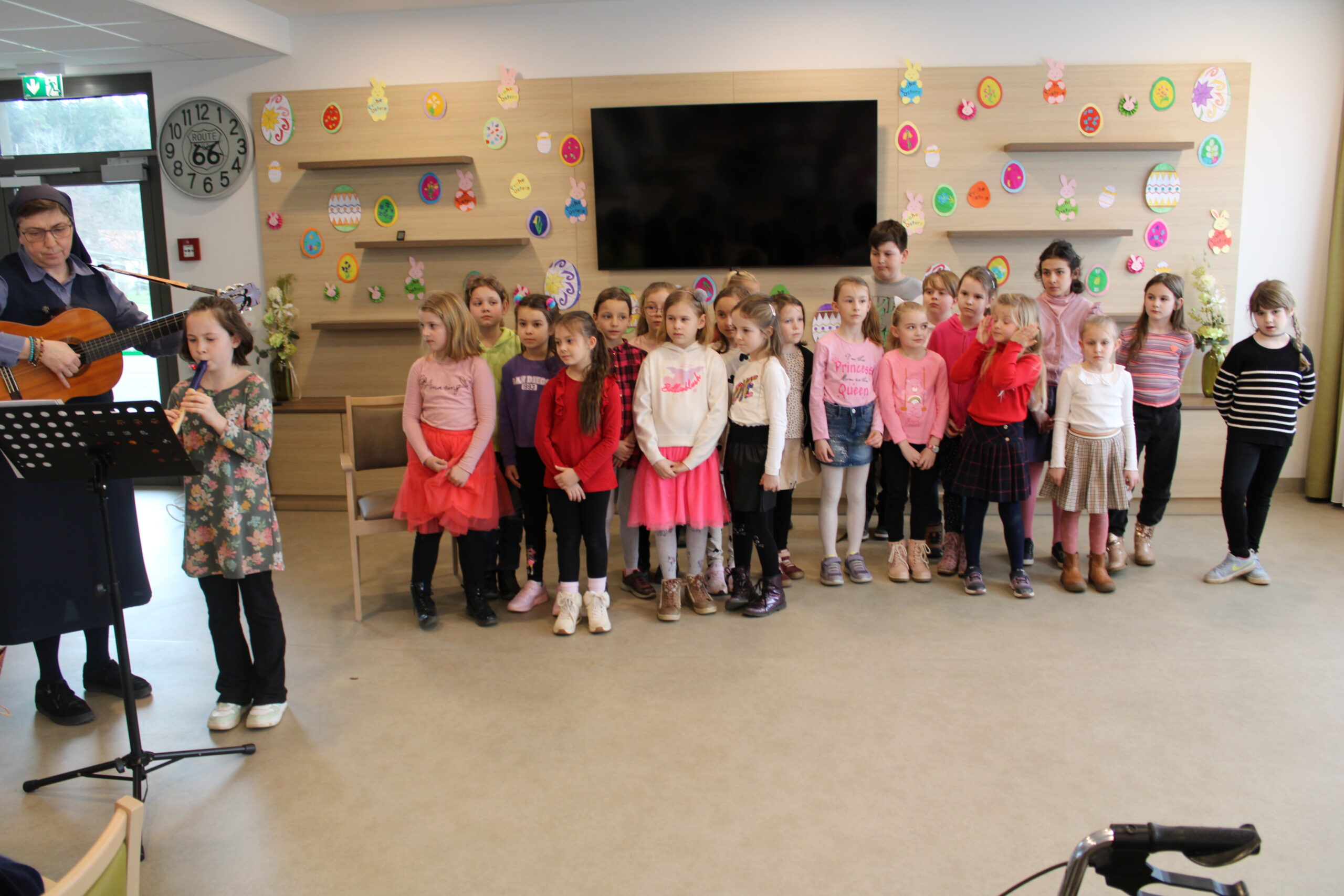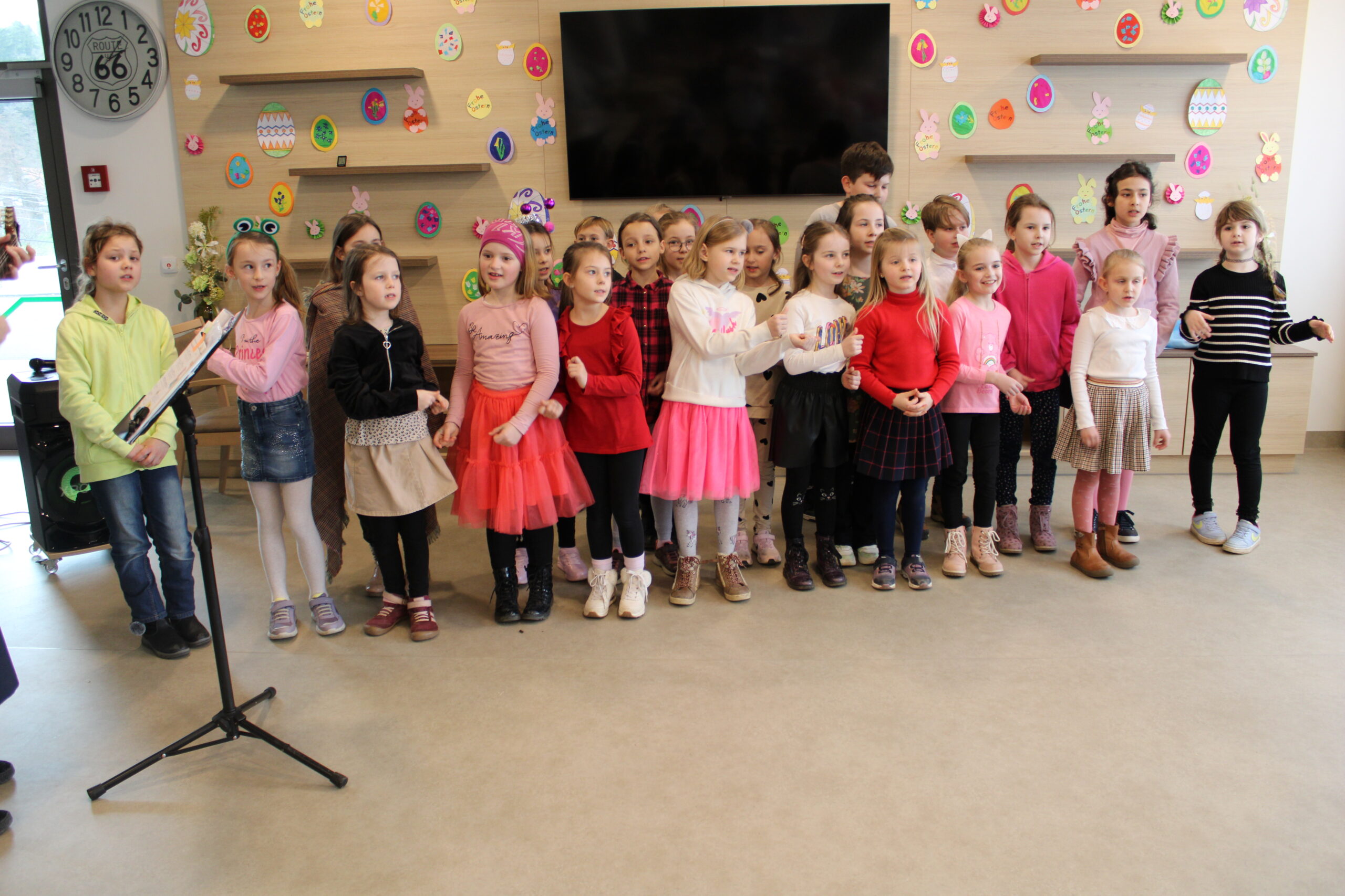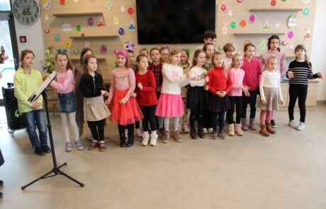 Die Volksschulkinder singen schöne Lieder.