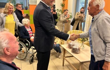 Kürzlich erhielten die Bewohner:innen sowie Mitarbeiter:innen des SeneCura Pflegezentrums Kreuzbergl einen unerwarteten Besuch. Alle hatten die Ehre, Herrn Bundeskanzler Nehammer kurz im Haus begrüßen zu dürfen. Herr Nehammer nutzte die Gelegenheit, einer der Bewohnerinnen, Frau Schaffer, zum 88. Geburtstag zu gratulieren, was sie sehr positiv überraschte. Auch Herr Lackner, ein weiterer Bewohner, war anwesend und tauschte sich kurz mit Herrn Nehammer aus. Besonders erfreulich war, dass Frau Schaffer Herrn Bundeskanzler Nehammer einen Kärntner Reindling überreichen konnte. Der Besuch war äußerst angenehm und ein besonderes Erlebnis, welches den Bewohner:innen noch lange in Erinnerung bleiben wird.