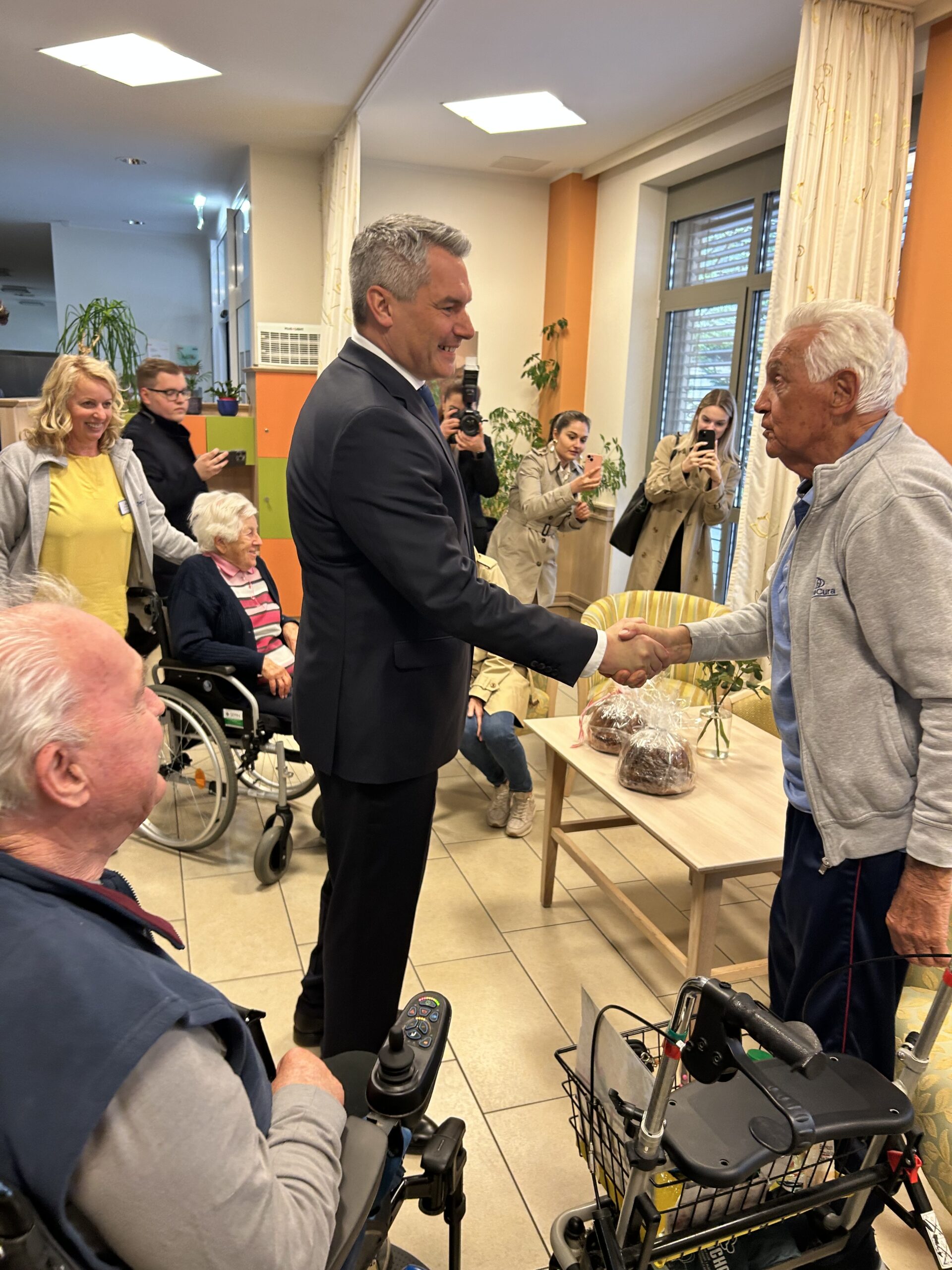 Überraschender Besuch des Bundeskanzlers Nehammer im SeneCura Pflegezentrum Kreuzbergl