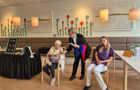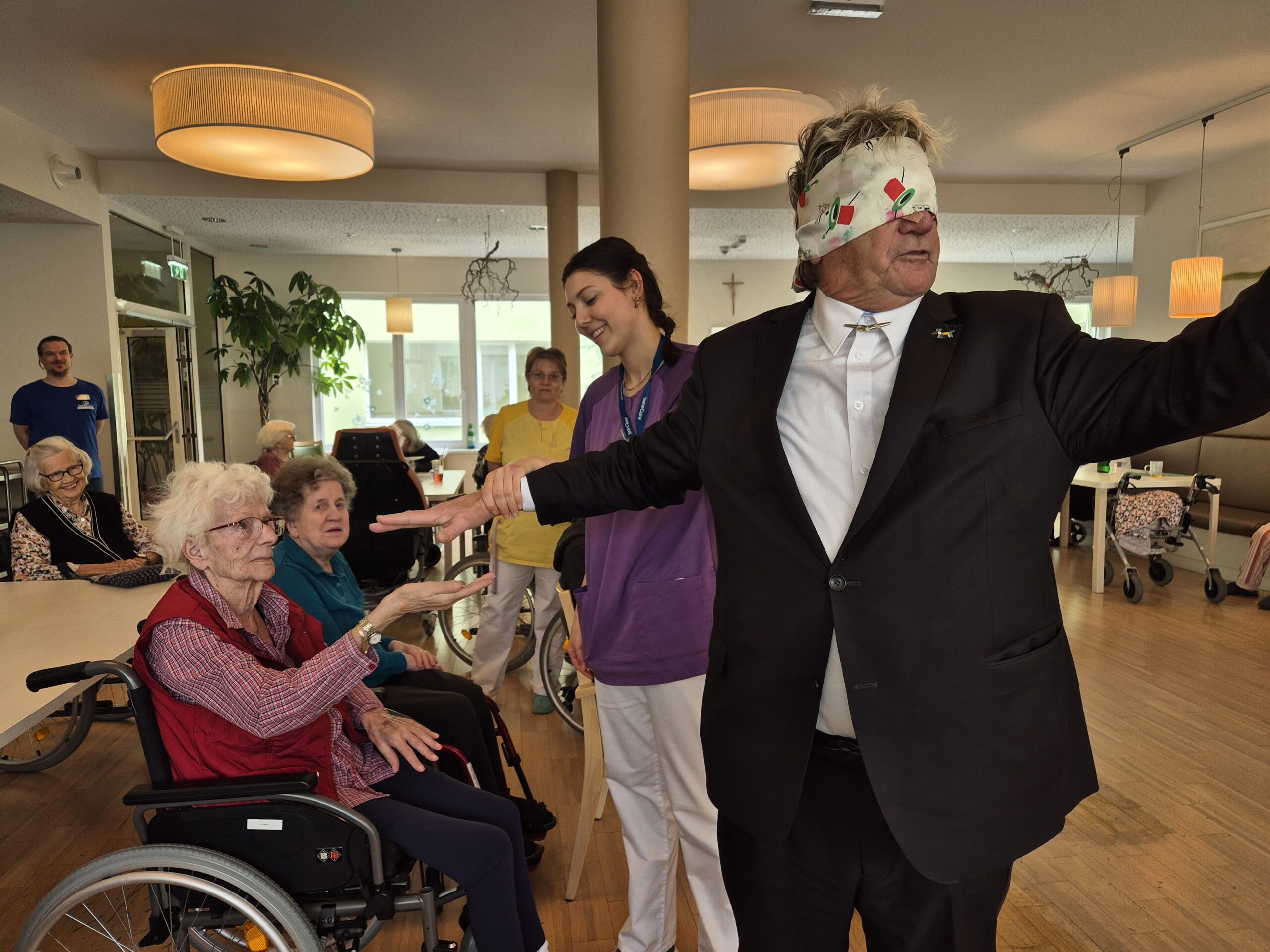 Die Bewohner:innen des SeneCura Pflegeheim Graz-Lend hatten vor Kurzem ein magisches Erlebnis, als ein Zauberer das Pflegeheim besuchte. Mit einer faszinierenden Zauber-Show begeisterte der Magier die Bewohner:innen sowie die Mitarbeiter:innen. Die atemberaubenden Tricks sorgten für Staunen und viel Freude. Der Besuch des Zauberers war eine willkommene Abwechslung im Alltag des Pflegeheims und wird allen noch lange in Erinnerung bleiben.