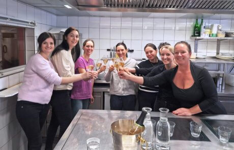 Der erste Termin fand Ende März statt, und führte die Teilnehmerinnen nach Vorarlberg, wo unter dem Motto „Kochen mit Freunden“ Chefkoch Valentin zum Fachsimpeln am Herd in seine Küche lud. „Es war einfach super nett – gemeinsam zu kochen, plaudern, sich mit seinen Kolleg:innen über Gott und die Welt auszutauschen“, freut sich PA Erna über einen gelungenen Betriebsausflug.