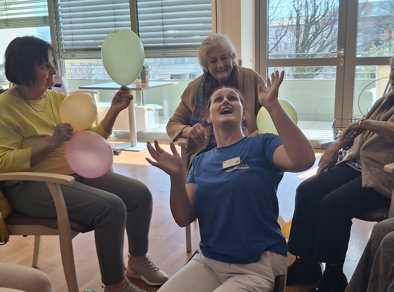 Unter dem Motto „Fit macht mit“ werden die Bewohnerinnen und Bewohner im SeneCura Kreuzbergl regelmäßig zu Bewegungseinheiten motiviert. Im Rahmen der Morgenrunde der Seniorenbetreuung stehen abwechslungsreiche Übungen am Programm, die mit viel Freude und in angenehmer Atmosphäre durchgeführt werden. Dabei zeigt sich, dass Bewegung mit Spaß deutlich leichter fällt und gleichzeitig das Wohlbefinden steigert. Auch die Mitarbeiterinnen und Mitarbeiter beteiligen sich aktiv an den Einheiten, wodurch ein gemeinsames Erlebnis entsteht, das das Miteinander stärkt und für zusätzliche Motivation sorgt.