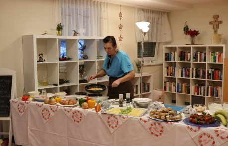 Der Titel „Frühstück der Sinne“ war dabei Programm: Alle fünf Sinne wurden angesprochen. Das Auge freute sich über das ansprechend angerichtete Buffet, während das Brutzeln der Speisen und der Duft von frisch gebratenem Speck durch den Saal zogen und Appetit machten.