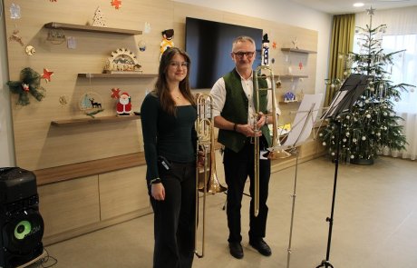 Ein besonderer Programmpunkt war das Vorlesen von Weihnachtsgedichten durch jeweils eine Bewohnerin. Frau Bürgermeisterin Waltraud Walch trug das Weihnachtsevangelium vor und verlieh der Feier einen besinnlichen Rahmen. Musikalisch umrahmt wurde die Feier durch Flora Hartinger und Dr. Bernd Kastenhuber mit stimmungsvollen Weihnachtsliedern sowie durch Werner Triebl.