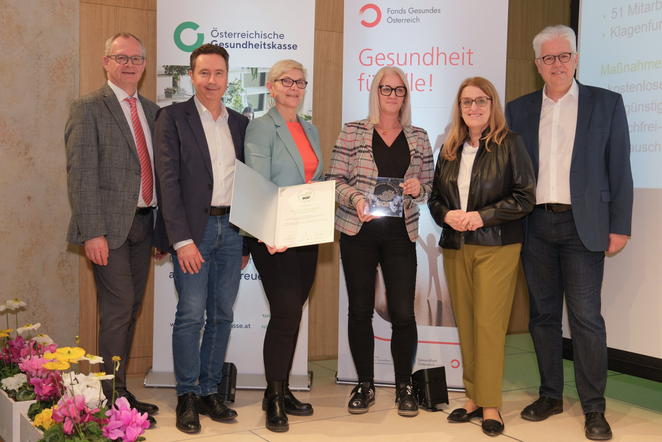 Große Freude im SeneCura Sozialzentrum Kreuzbergl: Kürzlich durfte unser Haus erstmals das BGF-Gütesiegel für Betriebliche Gesundheitsförderung entgegennehmen. Die feierliche Verleihung fand im Konzerthaus Klagenfurt statt, wo wir gemeinsam mit unseren Kolleginnen und Kollegen aus dem SeneCura Pflegezentrum Villach an der Veranstaltung teilnahmen. Das Gütesiegel ist Teil eines Projekts der Österreichische Gesundheitskasse und würdigt Betriebe, die sich besonders für die Gesundheit und das Wohlbefinden ihrer Mitarbeiterinnen und Mitarbeiter einsetzen.