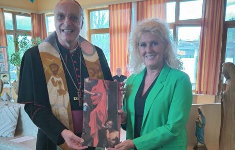 Der Tag begann mit einer feierlichen Andacht, an der sowohl Bewohner:innen als auch das Team des SeneCura Sozialzentrums Stegersbach teilnahmen. In dieser besonderen Atmosphäre teilte Bischof Ägidius Zsifkovics feierliche Worte, die besonders bei den Senior:innen auf Aufnahme stießen. Die Andacht war begleitet von Gesängen der Bewohner:innen und Mitarbeiter:innen. „Es war ein sehr bewegender Moment, als der Bischof zu uns sprach. Man spürte die Gemeinschaft – es hat uns allen sehr gutgetan“, erzählt Hildegard Rosenkranz, eine Bewohnerin des SeneCura Sozialzentrums Stegersbach. Als Zeichen der Dankbarkeit hatten die Bewohner:innen zuvor liebevoll einen Korb voll regionaler Schmankerln für den Bischof zusammengestellt, den Bewohnerin Hildegard Rosenkranz feierlich überreichen durfte. Auch der Bischof brachte ein besonderes Geschenk mit: einen Bildausschnitt des Altarbildes „Der heilige Martin“ von Joan B. Ranncher. Das Bild wurde an Haus- und Pflegedienstleitung Daniela Mitteramskogler übergeben, bevor es an seinem Platz im Haus angebracht wurde.