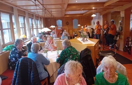Die Bewohner:innen des SeneCura Sozialzentrums Hard – Haus In der Wirke erlebten kürzlich einen spannenden Tag auf der Blütenfahrt. Die ehrenamtlichen Mitarbeiterinnen Margit Loser und Julia Meusburger organisierten voller Engagement Sponsoren, die dann die gesamte Blütenfahrt mit etwa 35 Teilnehmer:innen finanzierten. Gemeinsam mit den Bewohner:innen startete die Blütenfahrt und man machte sich auf den Weg zum Schetteregger Hof nach Schetteregg. Dort angekommen wurden alle Bewohner:innen und ehrenamtlichen Mitarbeiter:innen sofort mit Kaffee und Kuchen verwöhnt. Anschließend wurde den Gästen noch ein köstliches Abendessen serviert und die Bewohner:innen genossen einen Käse- oder Schinkenteller mit Wurstsalat. Musikalisch begleitet wurde der ereignisreiche Nachmittag von den Harder Sternensänger, die ebenfalls ehrenamtlich gesungen haben und für eine stimmungsvolle Atmosphäre sorgten. Die Musikantinnen und Musikanten verteilten außerdem ausgedruckte Liedtexte, welche die Bewohner:innen zum Mitsingen animierten. Die ehrenamtlichen Fahrer:innen haben die Bewohner:innen abschließend wieder sicher nach Hause chauffiert. Die Seniorinnen und Senioren hatten sehr viel Spaß und freuen sich jedes Jahr aufs Neue auf die Blütenfahrt.