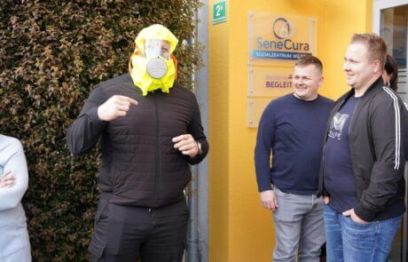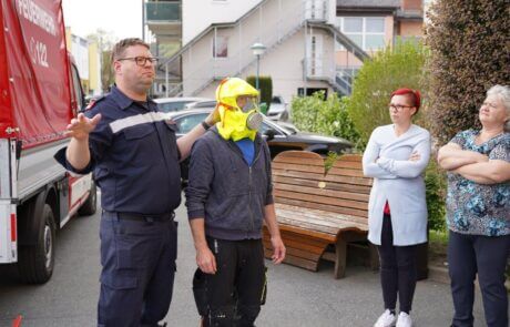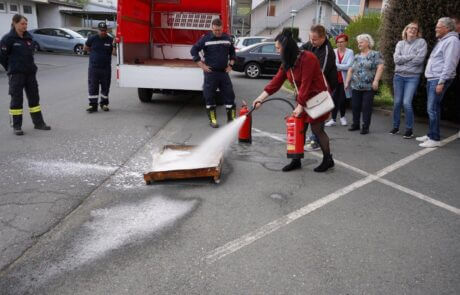 Im SeneCura Sozialzentrum Wildon war letztens im Zuge der Teambesprechung auch die Feuerwehr zu Gast, um die jährliche Brandschutzübung inkl. Evakuierung und Löschübung abzuhalten. Nach der Besichtigung des Hauses und Begutachtung der Brandmeldeanlage gingen es zum aktiven Teil der Schulung über. Die Mitarbeiter:innen des Hauses konnten die verschiedenen Arten von Feuerlöscher ausprobieren, es wurden Evakuierungen durchgeführt und der Sammelplatz inspiziert. Herr OBM Ing. Stefan Pöschl zeigte dem Team unter anderem, wie Fluchtmasken angewendet werden können und rief die wichtige KARL-Regel (Keine Panik / Alamieren / Retten / Löschen) in Erinnerung. Nachdem das Wissen wieder aufgefrischt war, gab es zum Abschluss für alle noch frisches Backhendl mit Kartoffelsalat von der lieben Silvia Fedl. Bei einem lauen Aprilabend konnte dieser gelungene Tag gemeinsam bei vielen netten Gesprächen ausgeklungen werden.
