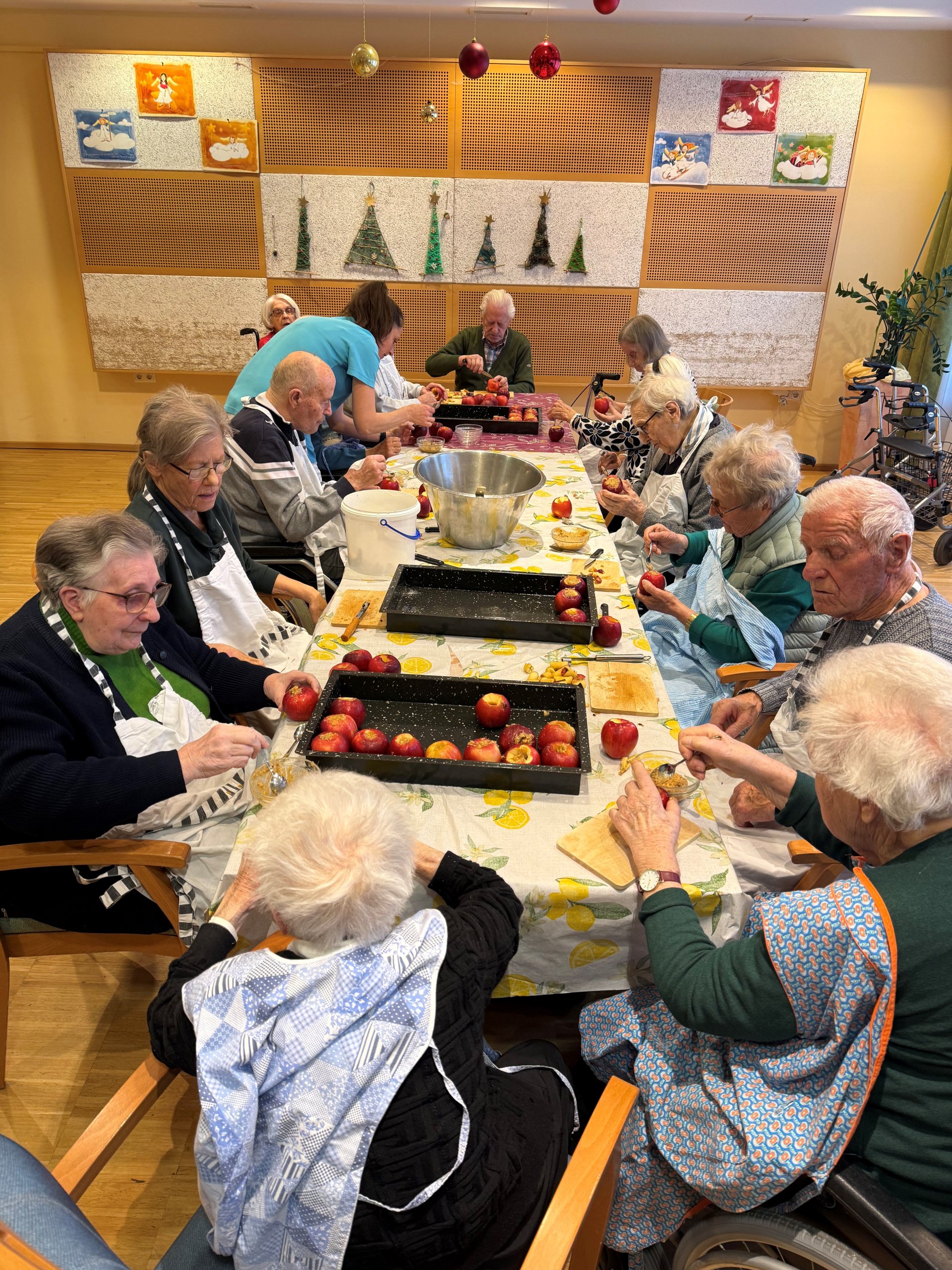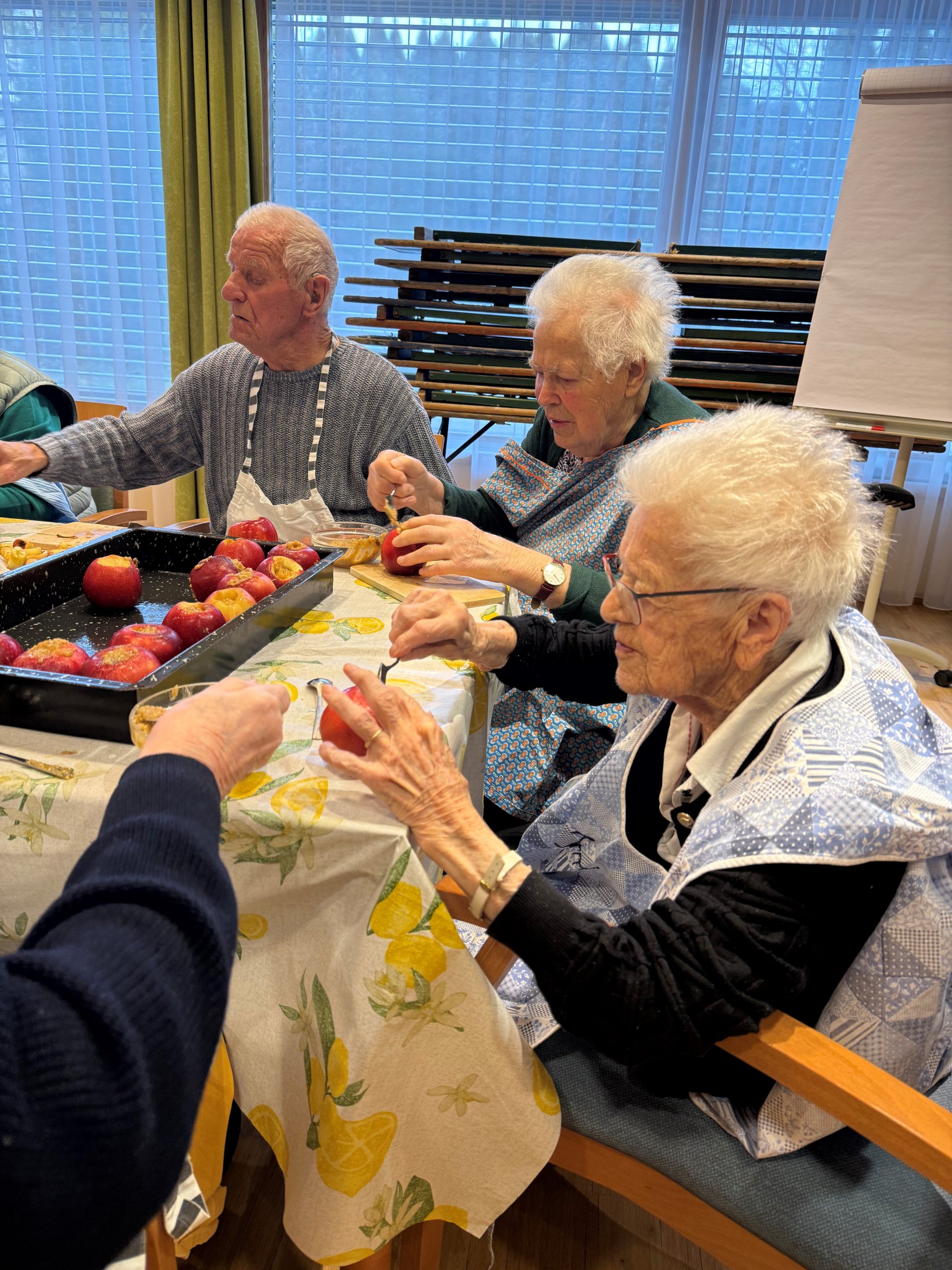 Äpfel wurden gefüllt, abgeschmeckt und mit viel Sorgfalt vorbereitet. Dabei entstanden Gespräche über frühere Weihnachtszeiten, über Rezepte von damals und kleine Familienrituale.