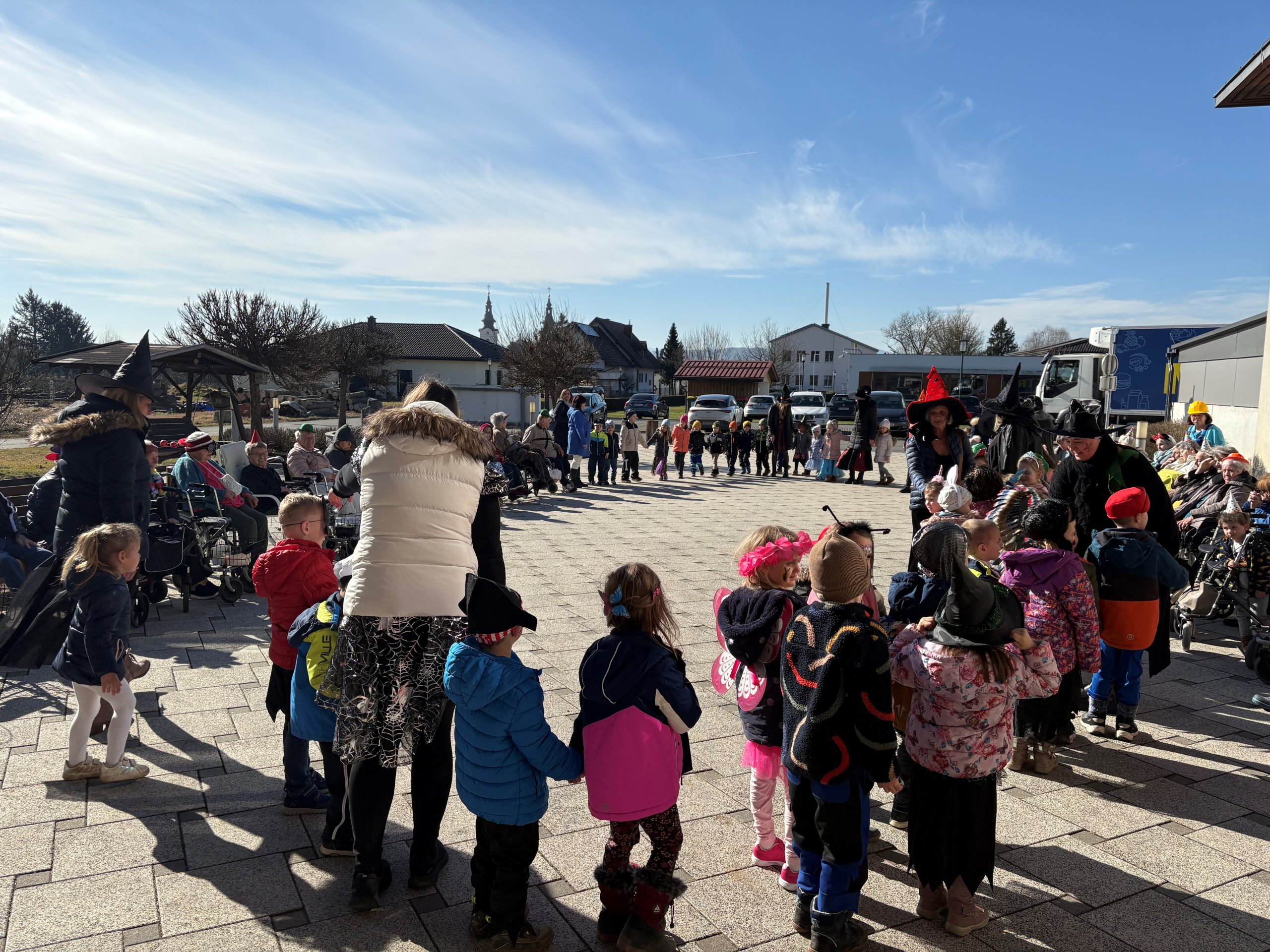 Unter dem Motto „starke Truppe“ tummelten sich am Faschingsdienstag ein Haufen Bauarbeiter, Mäuse, Cowboys und sogar Bienchen im SeneCura Sozialzentrum St. Veit in der Südsteiermark herum. Der Kindergarten des Ortes besuchte die Faschingsnarren wiedermal zum ausgelassenen Faschingsfest und verbreitete wunderbar gute Laune. Begleitet von Musik haben die Bewohner:innen fleißig gesungen, getanzt und gelacht. Natürlich gab es backfrische, flaumige Faschingskrapfen für alle. Ein herrliches Fest bei wunderschönem fast schon frühlingshaften Wetter.